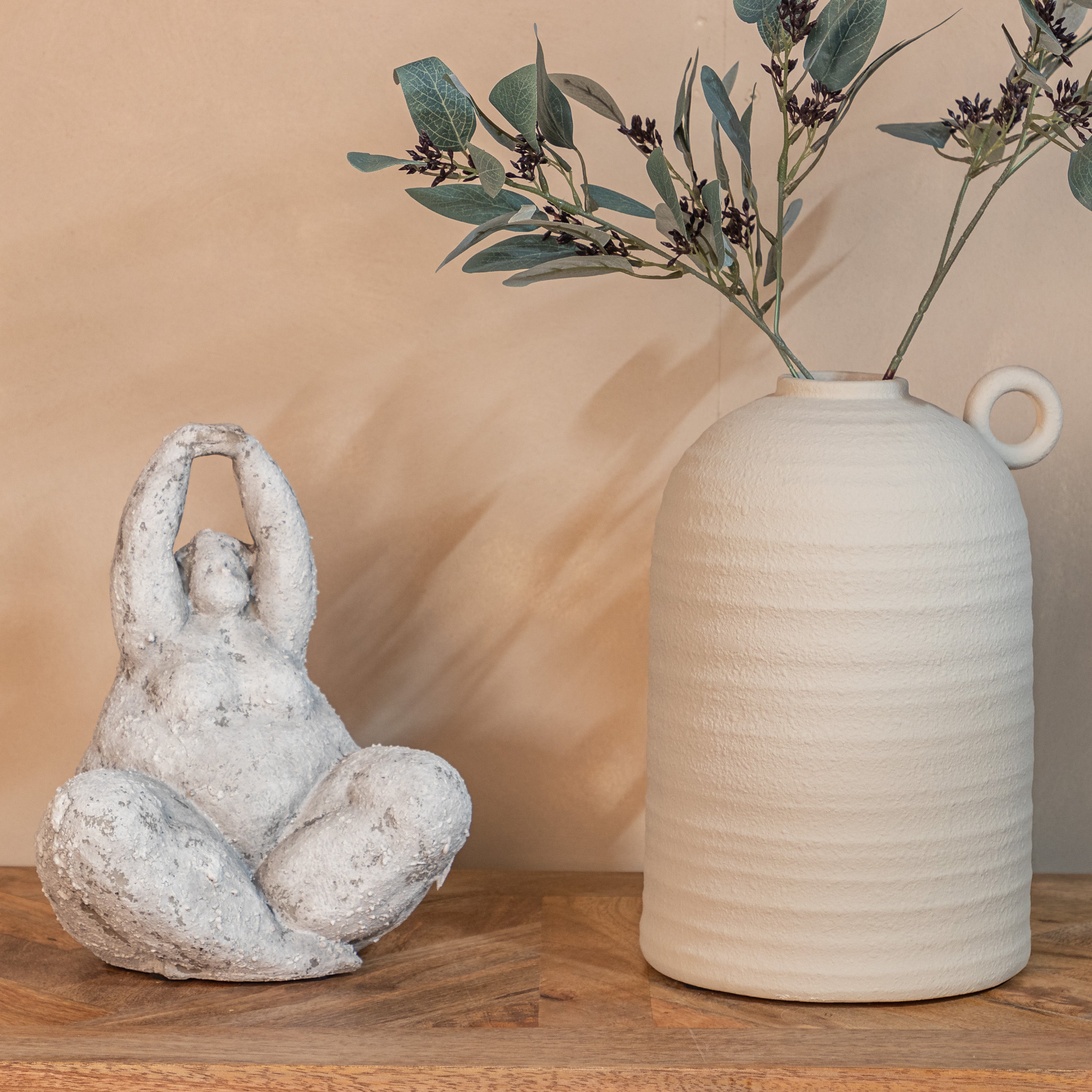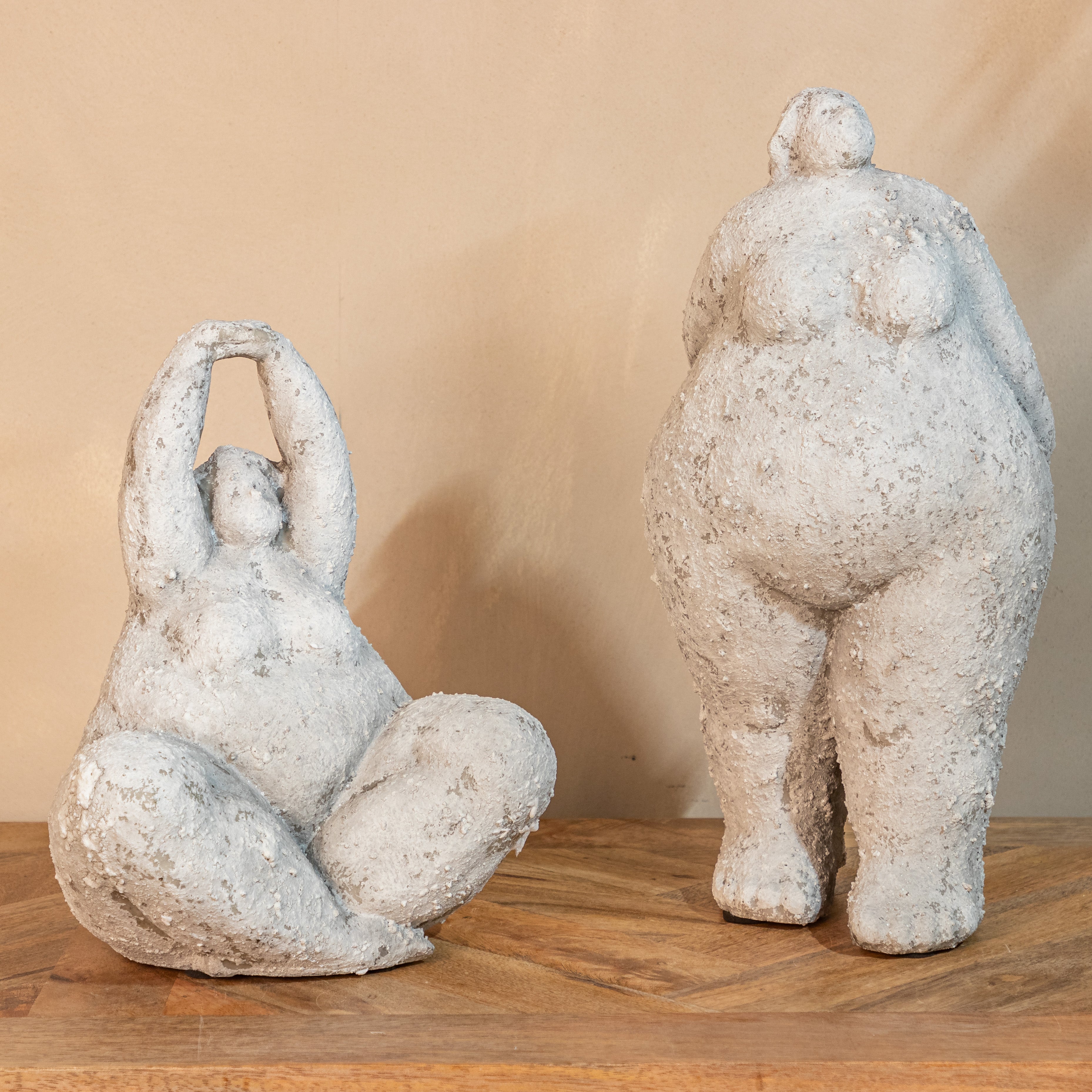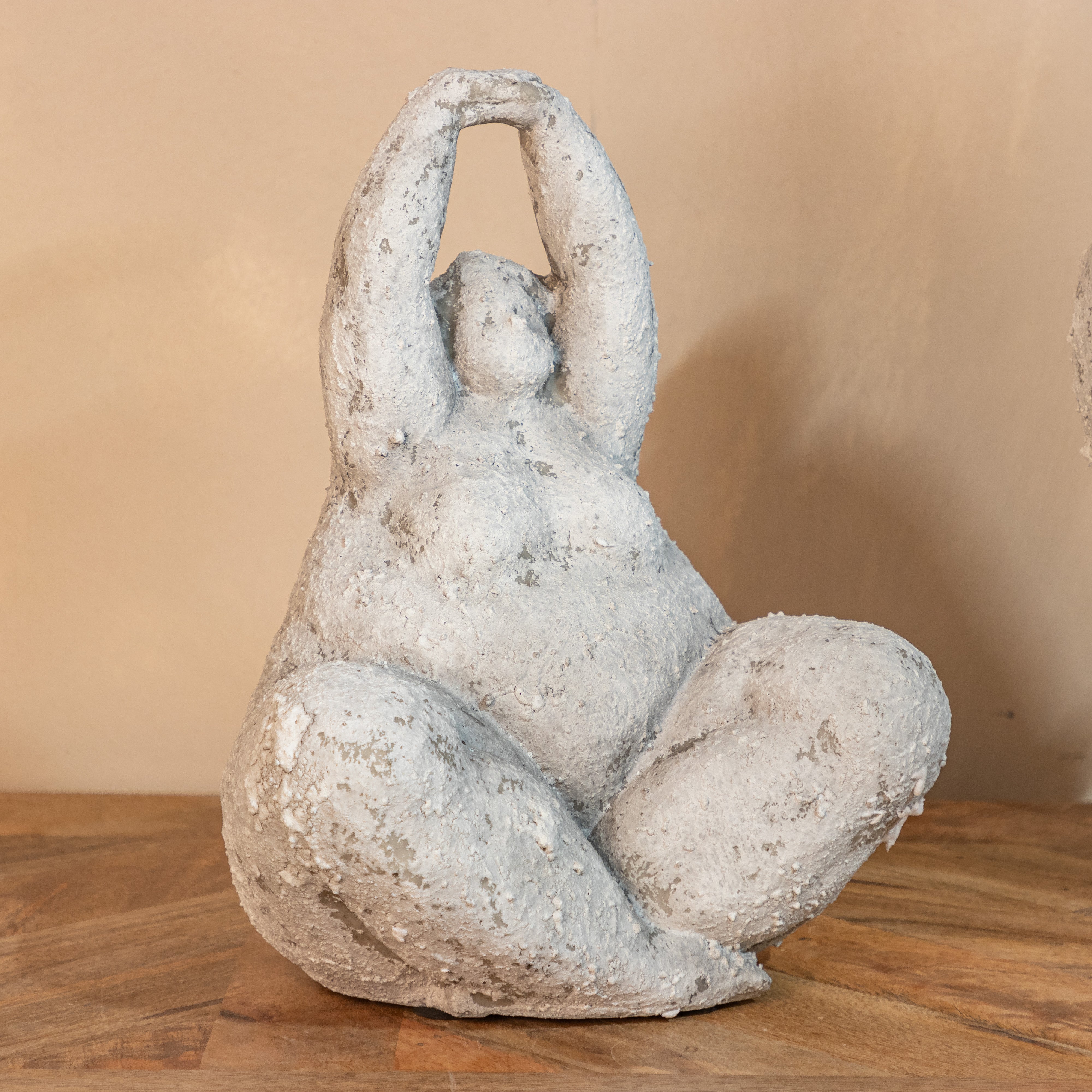 "Our stone effect sitting female figure statue is made from distressed stone material and has a beautiful playful style. The rustic white colouring gives it a characterful timeless appearance " - Jessica and Adam