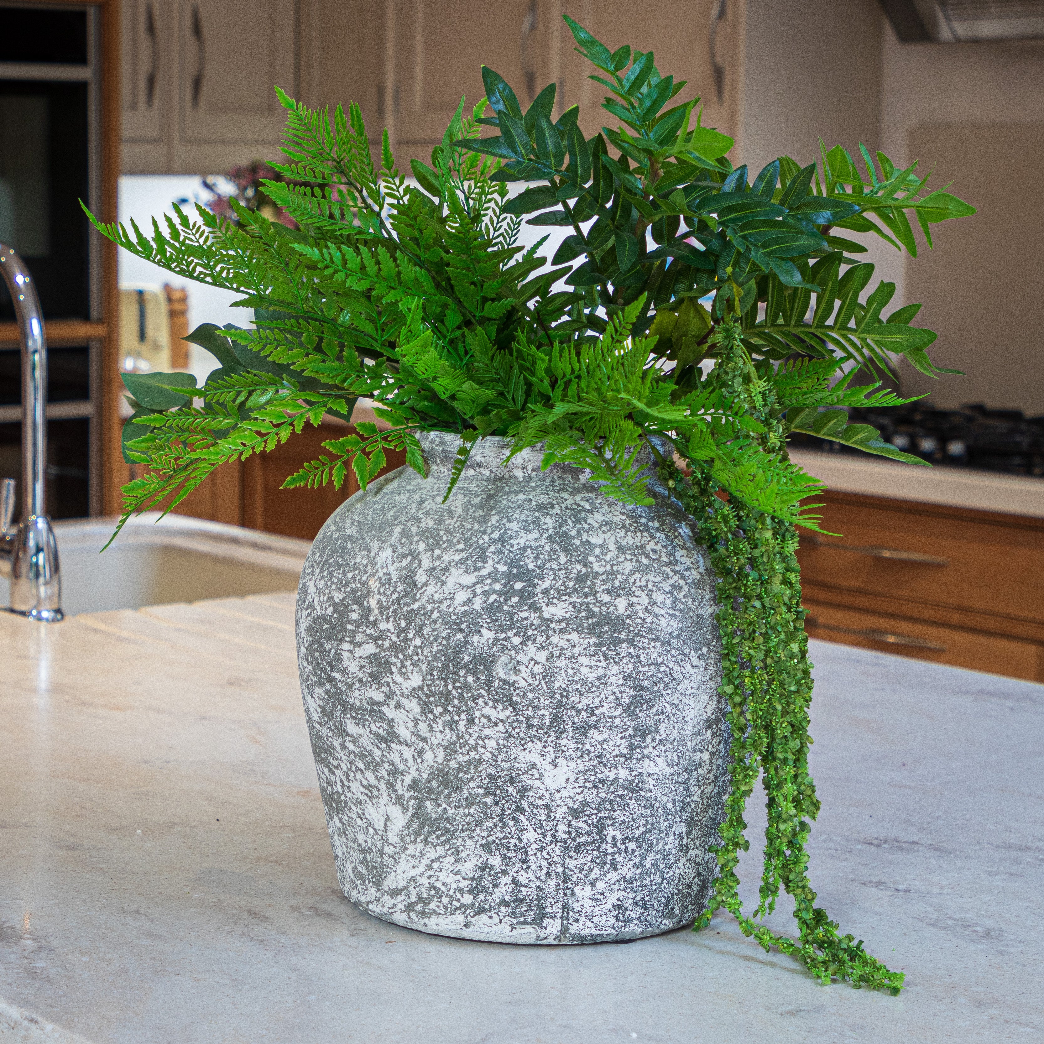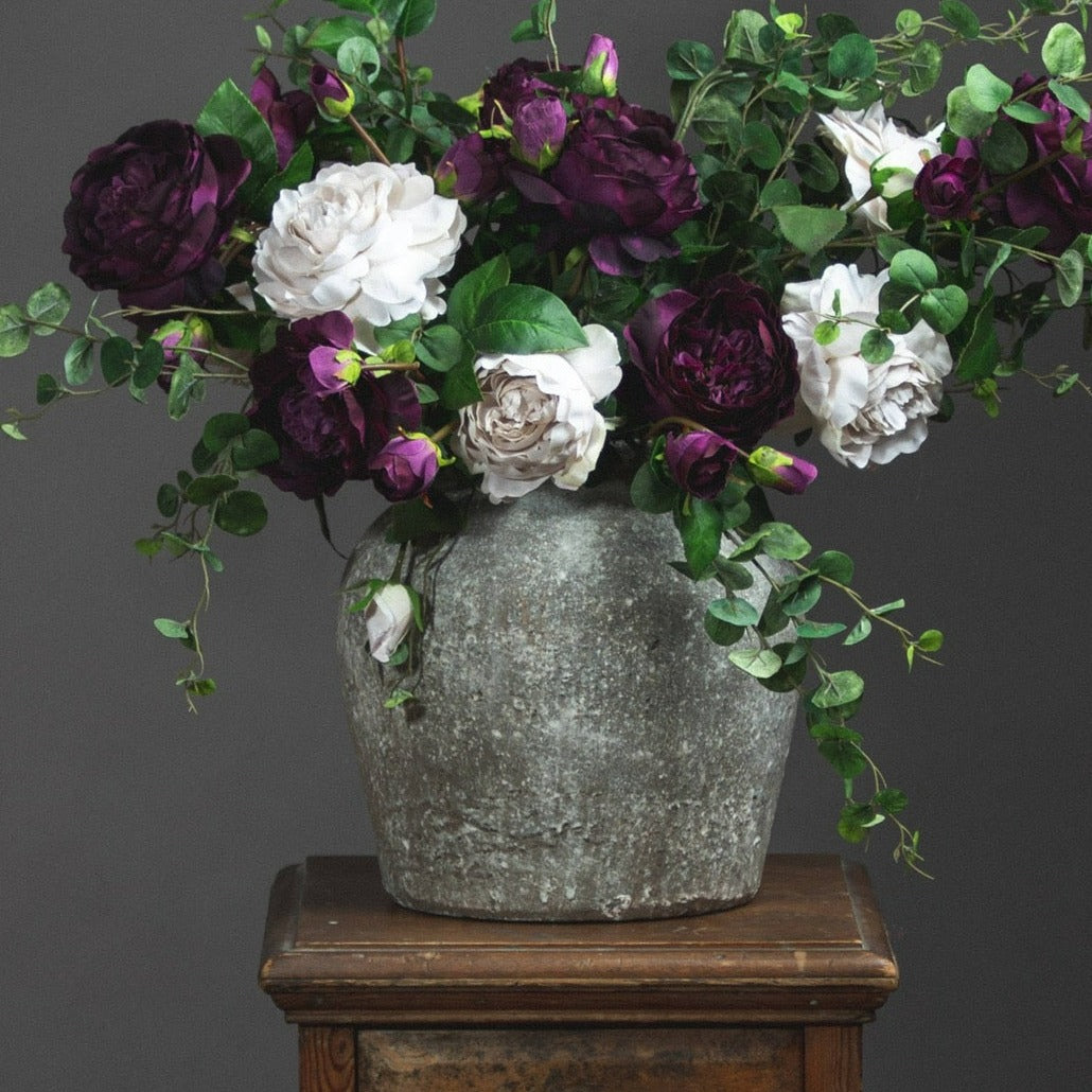 "This stunning vase is the Aged Stone Ceramic Vase, finished in a stone effect and standing at 30cm tall and 29cm deep and wide this vase would make an ideal contribution to any home while the stone colouring and simple design lends a timeless classic look" - Jessica and Adam