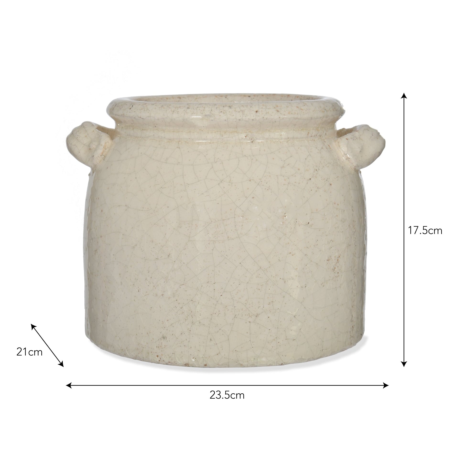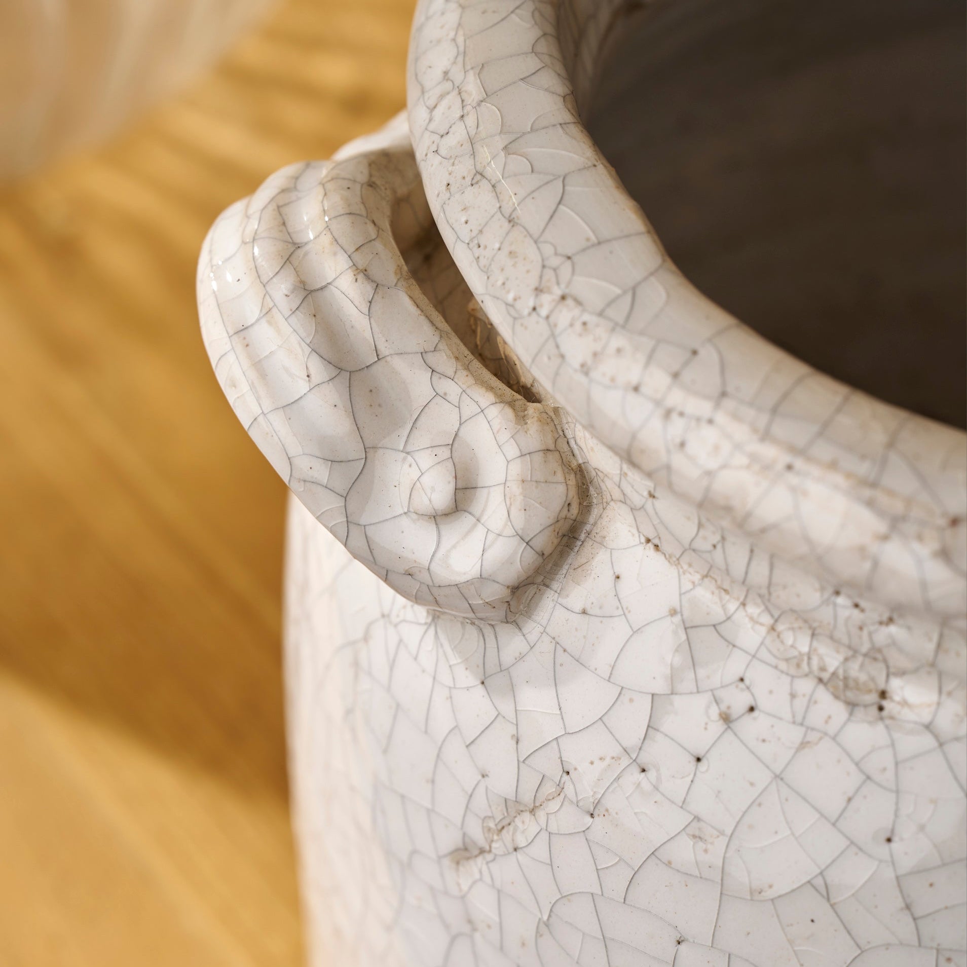 "Handcrafted with a crackle white glaze this Ravello Pot with Handles is multi-functional for use around the house. The chunky... See Description
