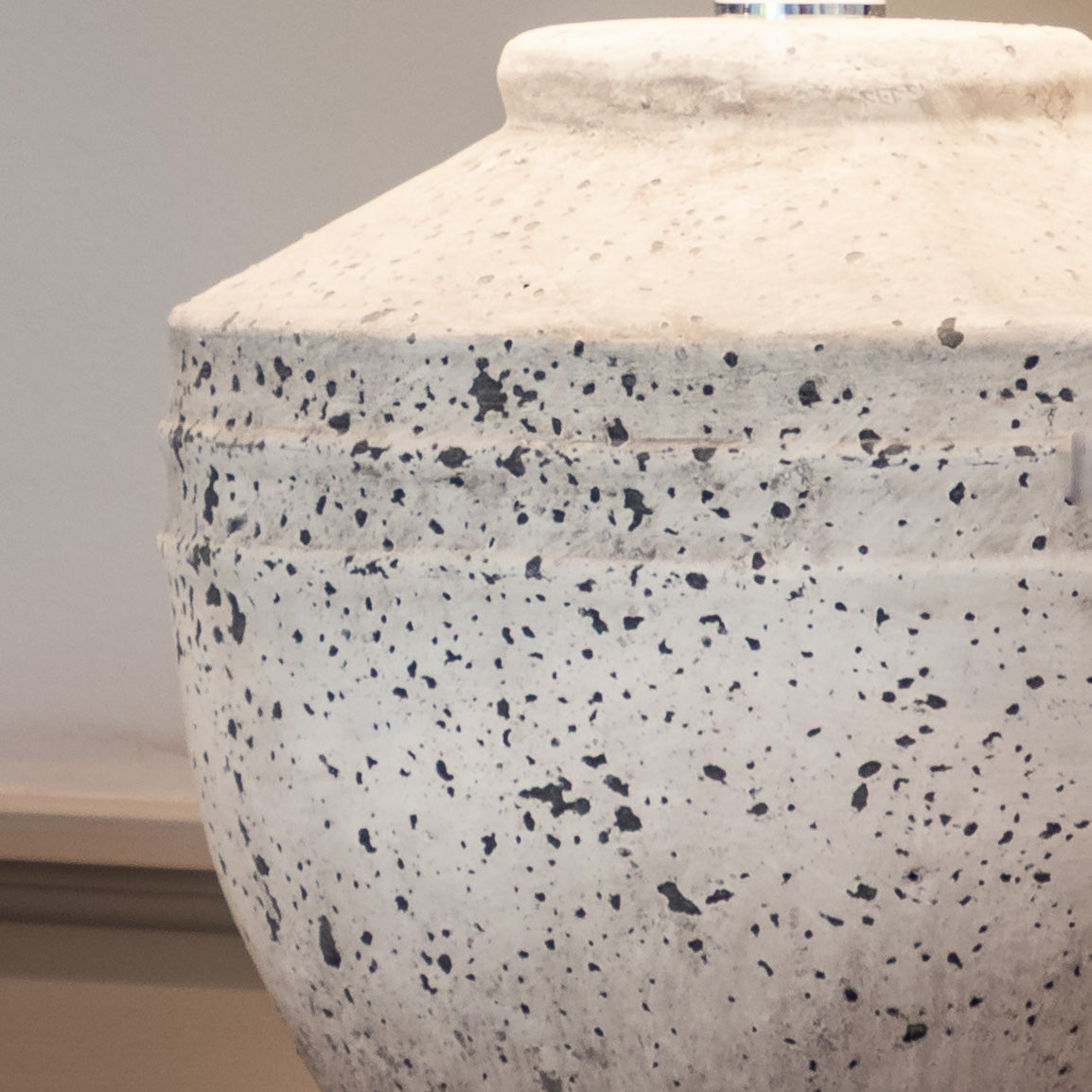 "A beautiful sculpted stone based lamp base finished with a natural linen taupe coloured shade. The use of materials... See Description