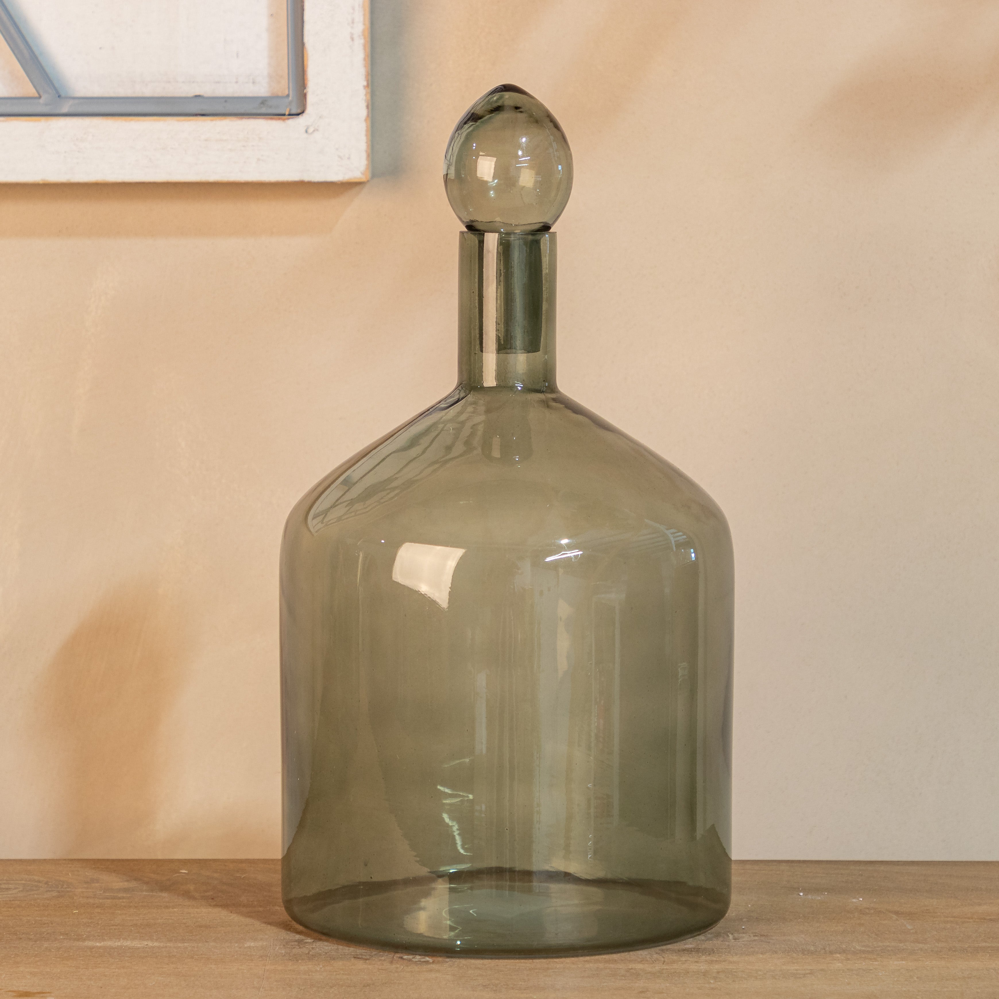 "This Smoked Sage Squat Glass Bottle with Stopper is a beautiful addition to any home decor. The glass bottle is... See Description