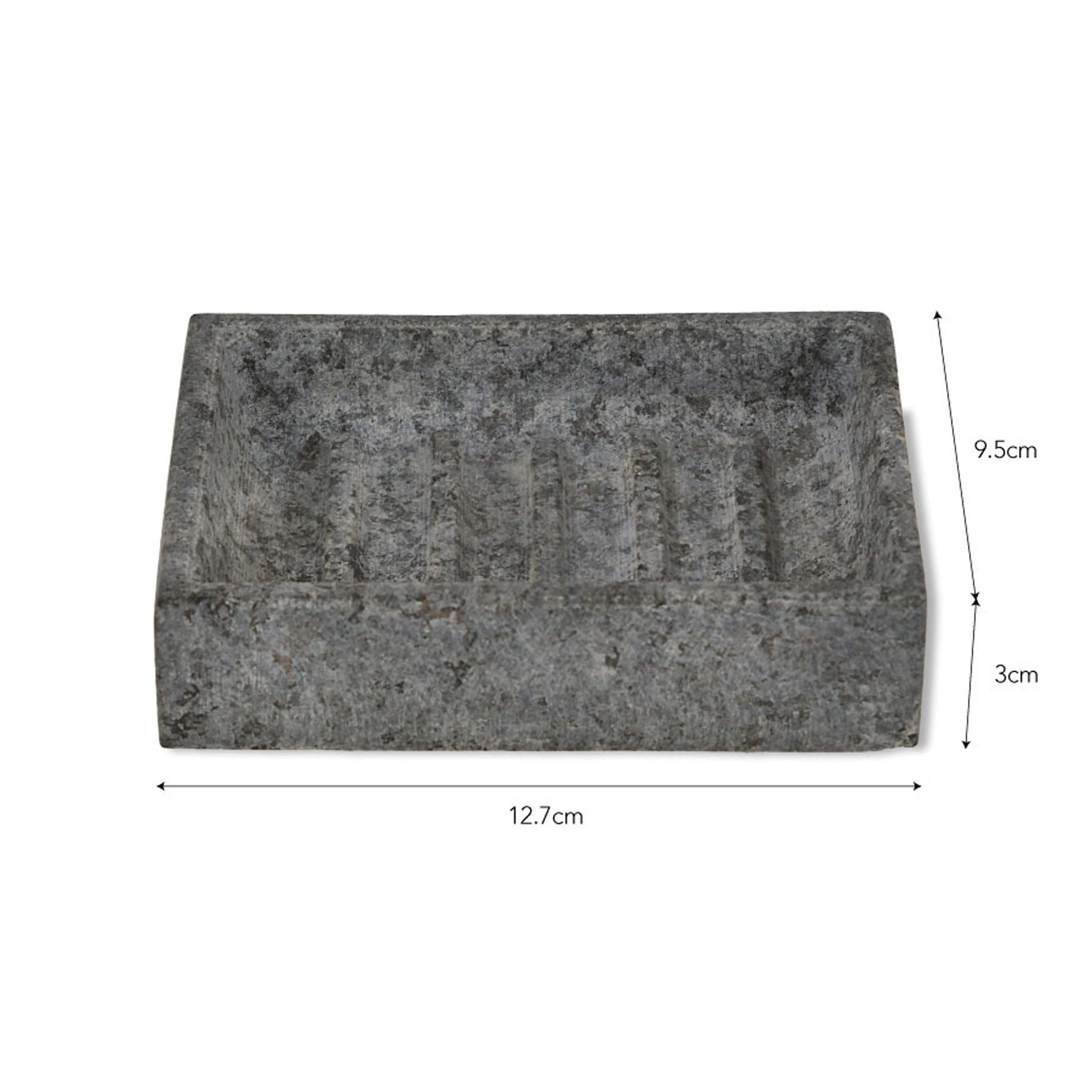 "Featuring a simple contemporary design the Westcote Soap Dish in Granite will sit perfectly in any bathroom or kitchen. Rectangular and chunky in design it includes inner ridges allowing the soap to drain away excess water. Its deep grey colouring will suit a range of interiors and comes in a specially designed kraft box making a perfect gift" - Jessica and Adam