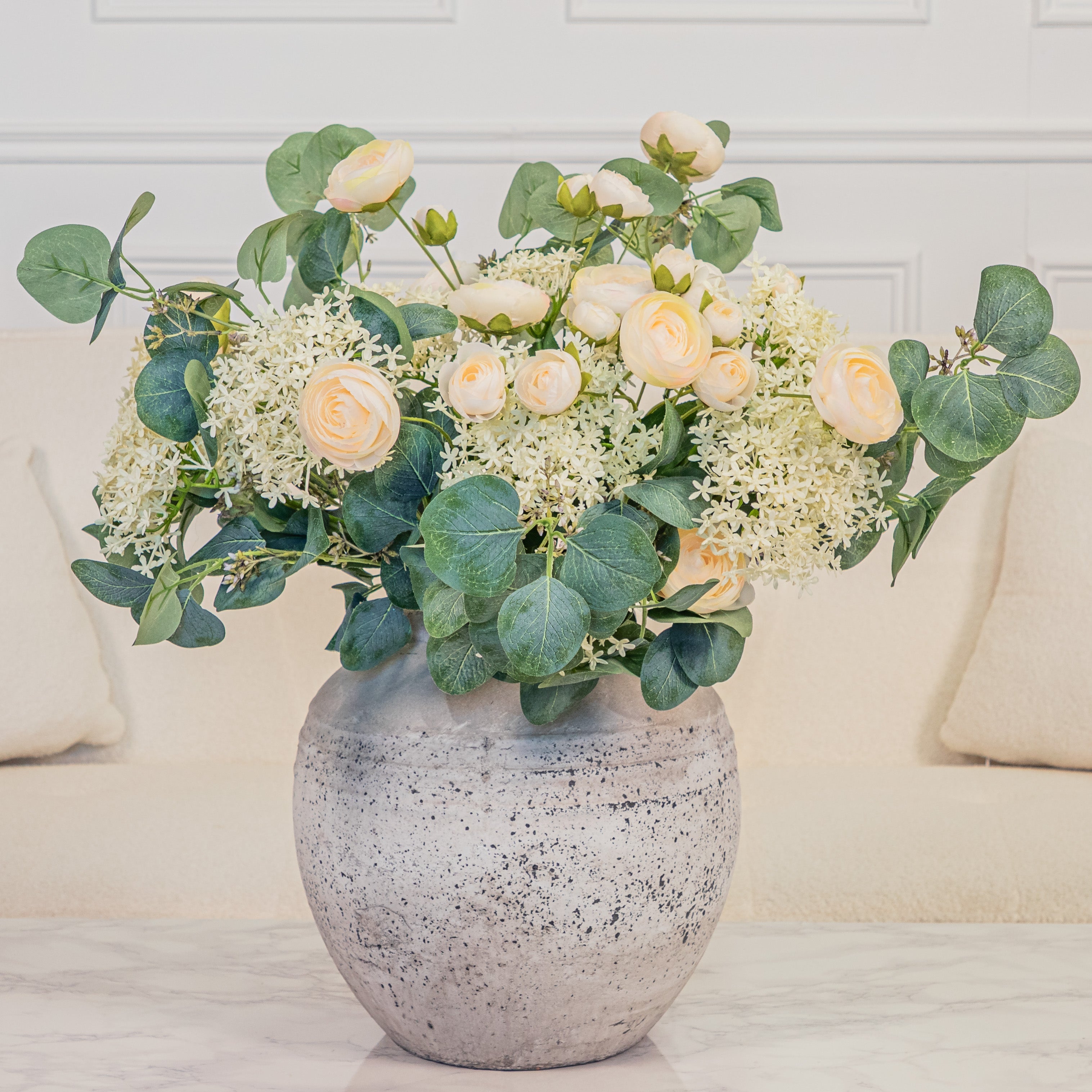 Cream Crown Hydrangea and Ranunculus Deluxe Arrangement