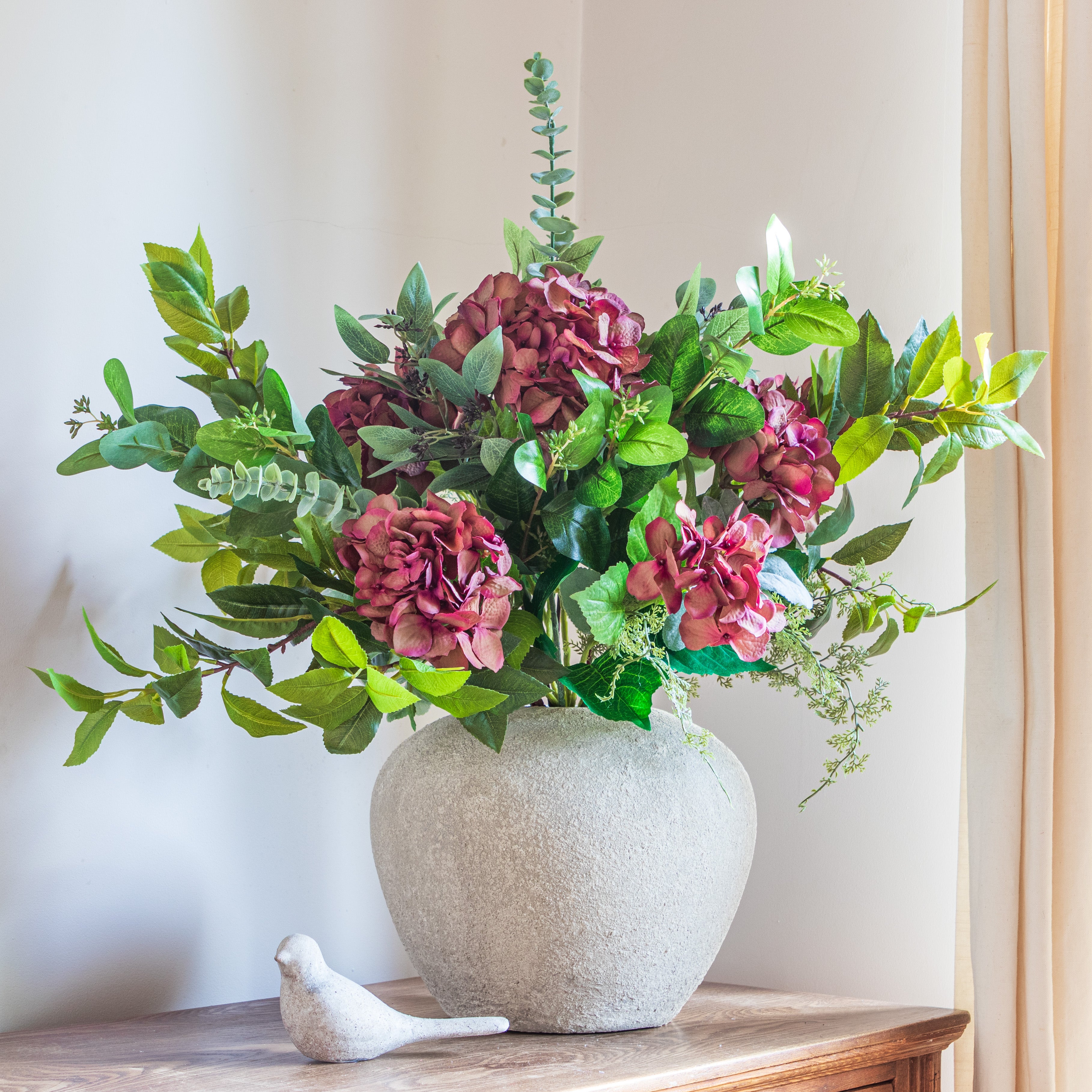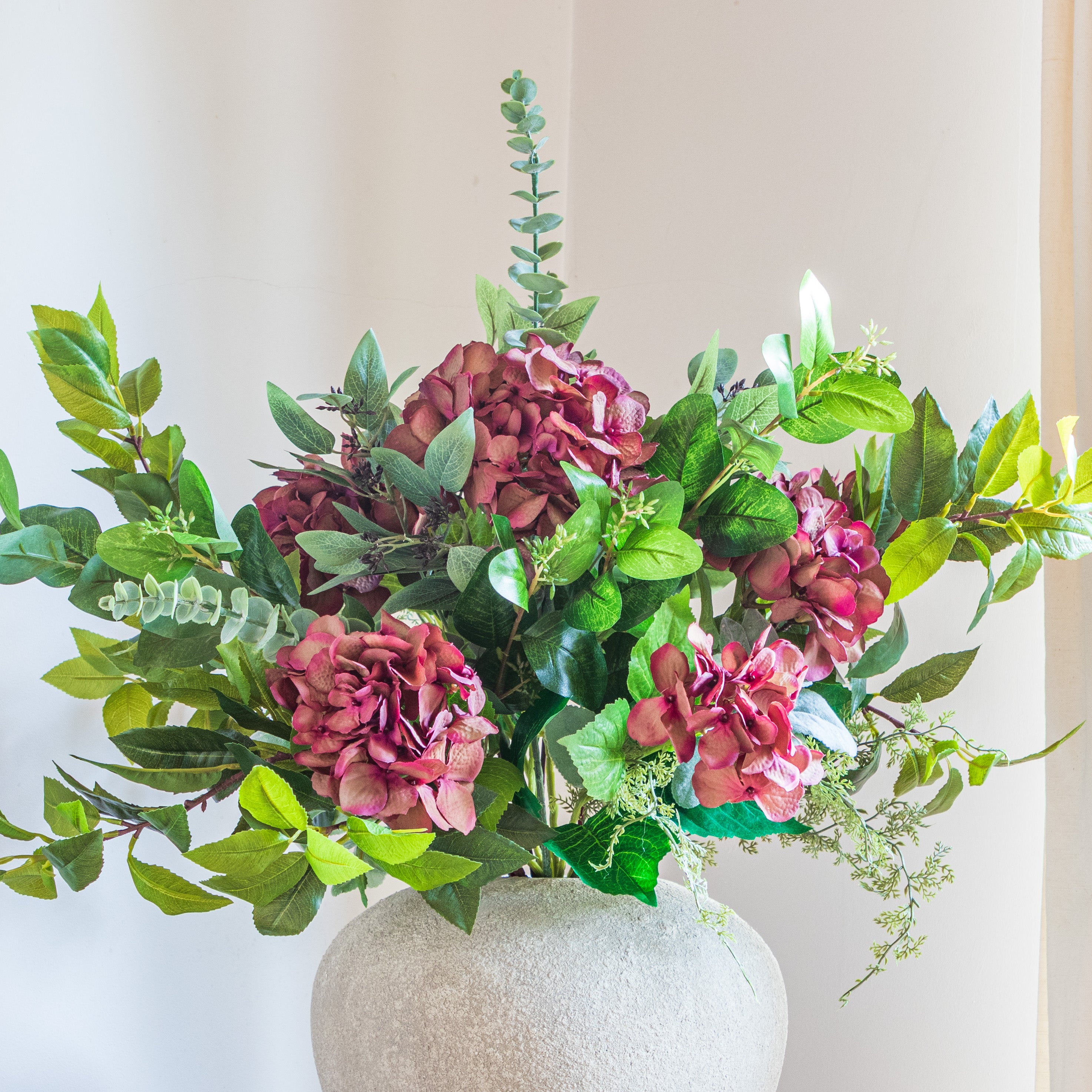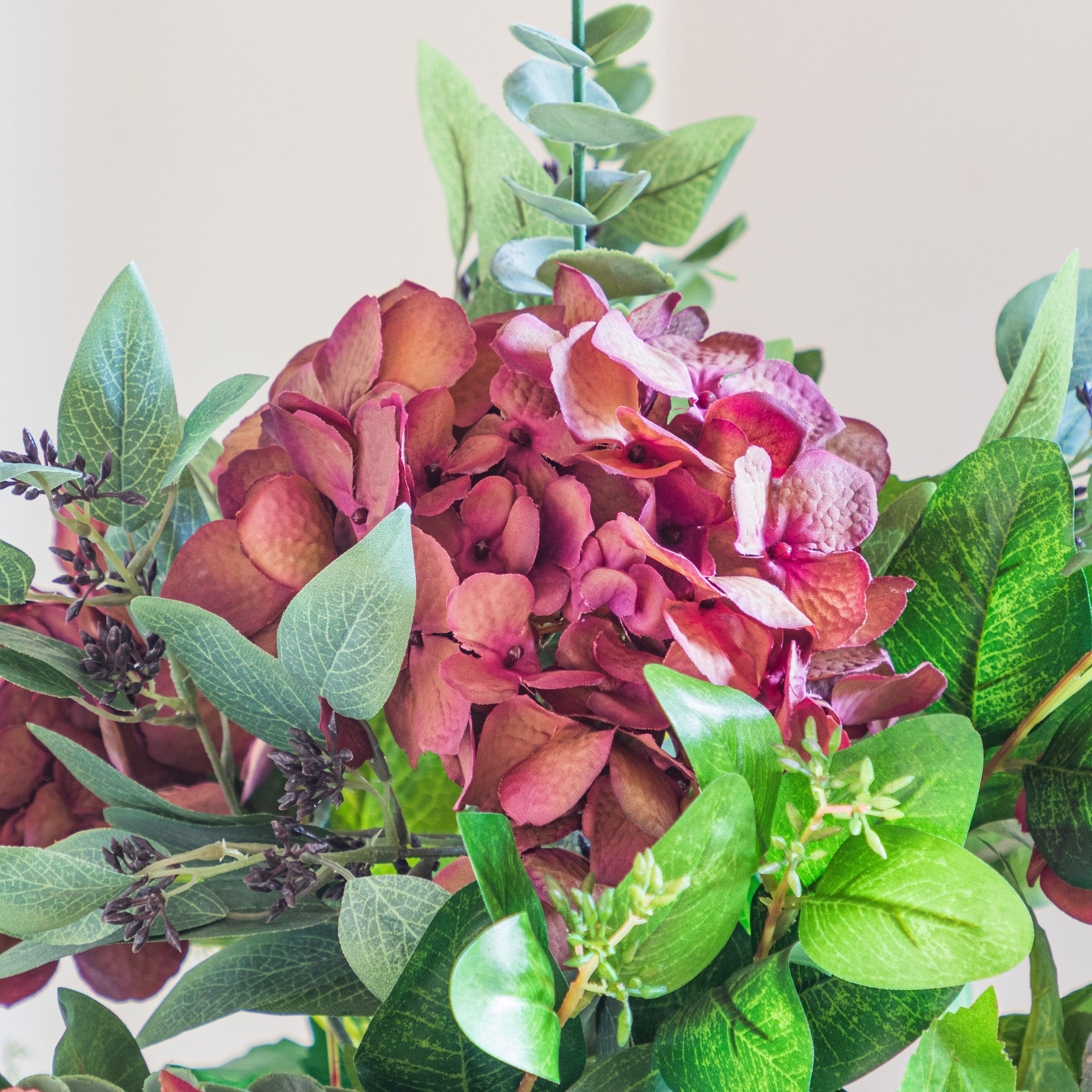"This Faux Autumnal Hydrangea Bouquet is the perfect addition to any home. With a realistic arrangement of faux foliage and the beautiful autumn hydrangeas it adds a touch of sophistication to any room" - Jessica and Adam