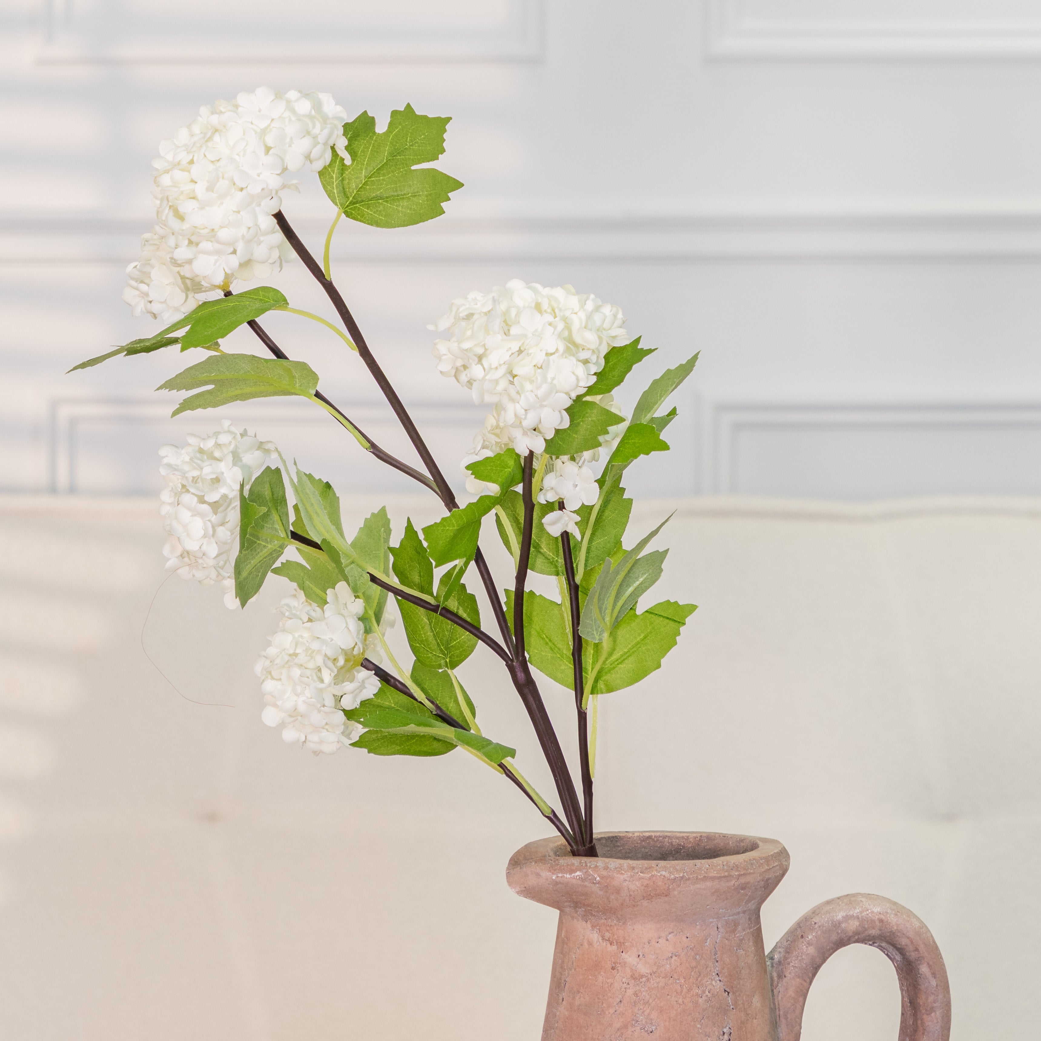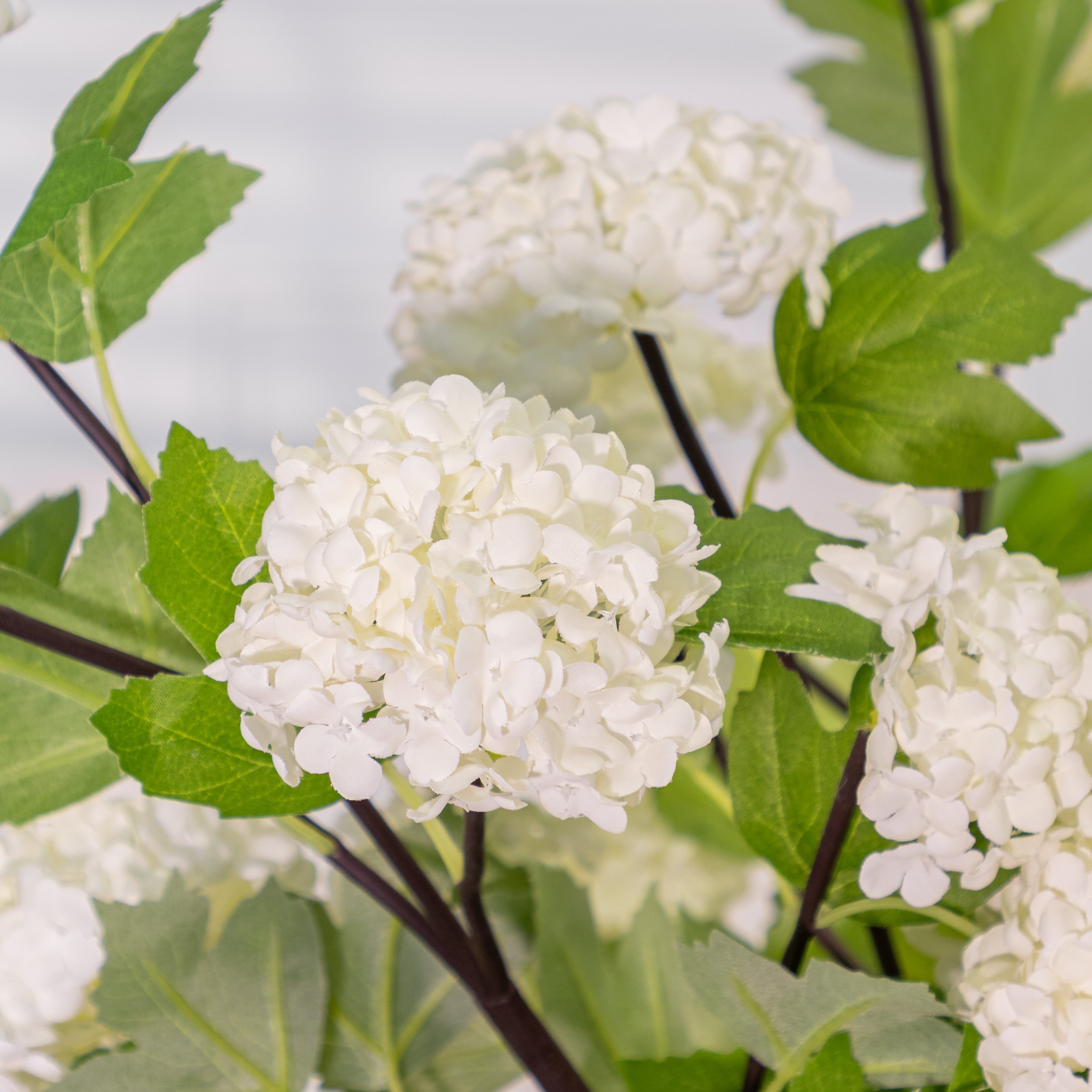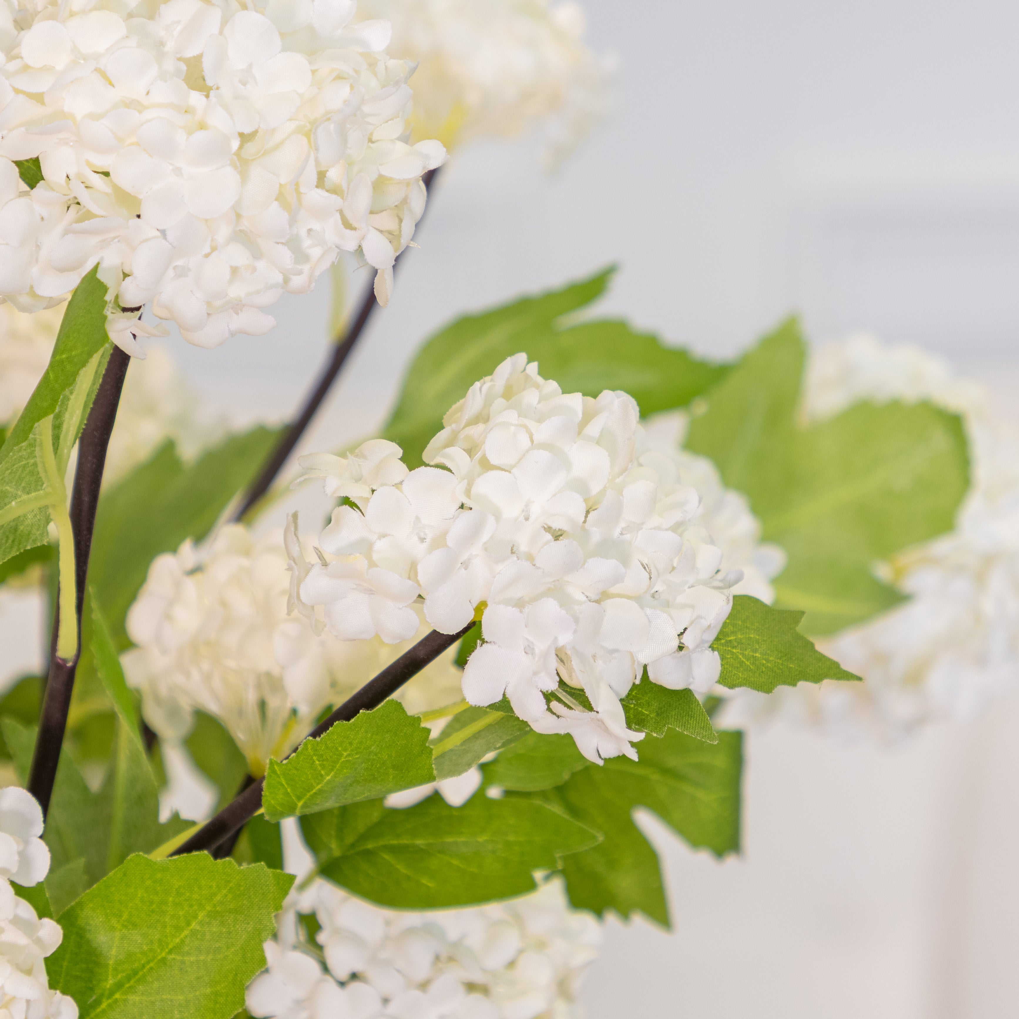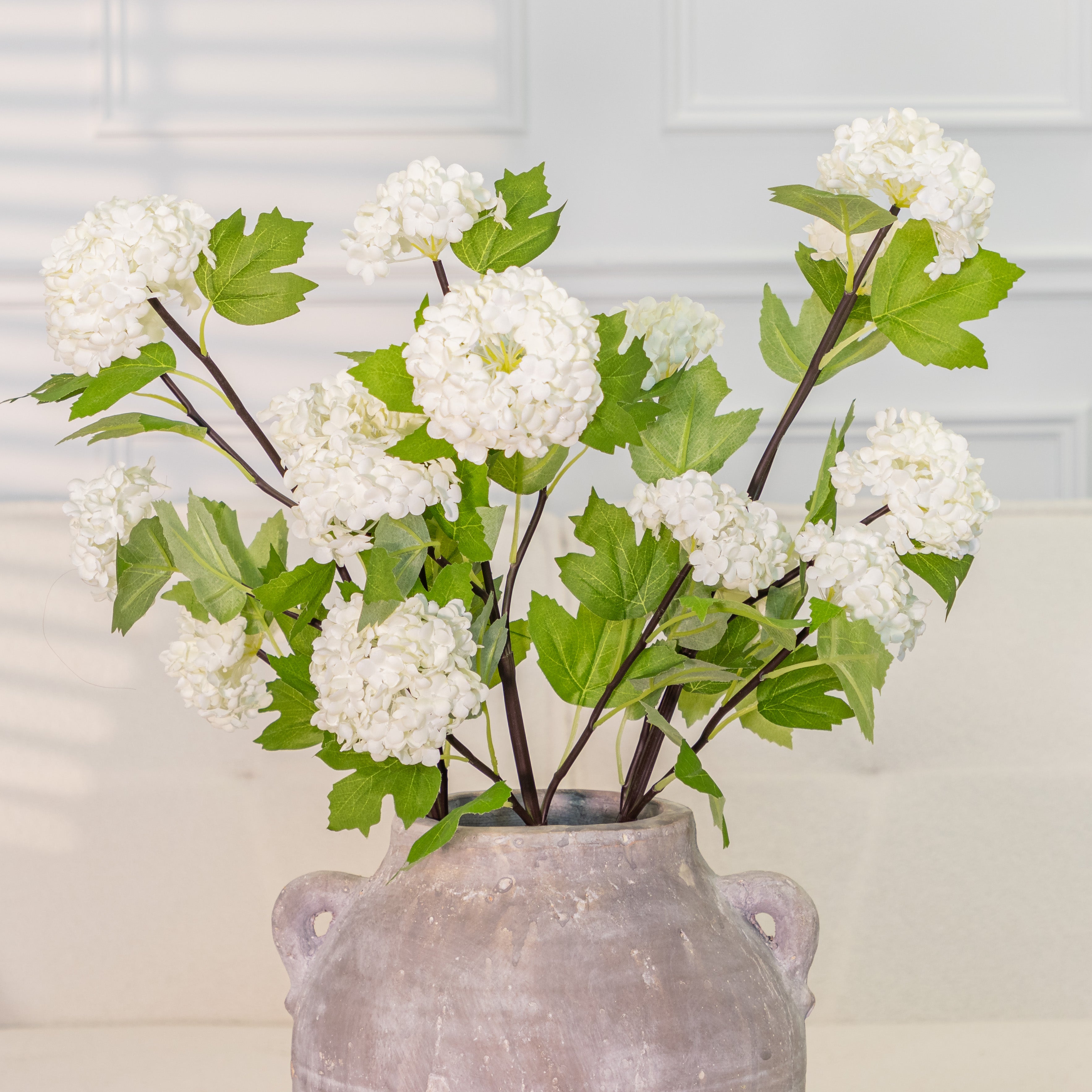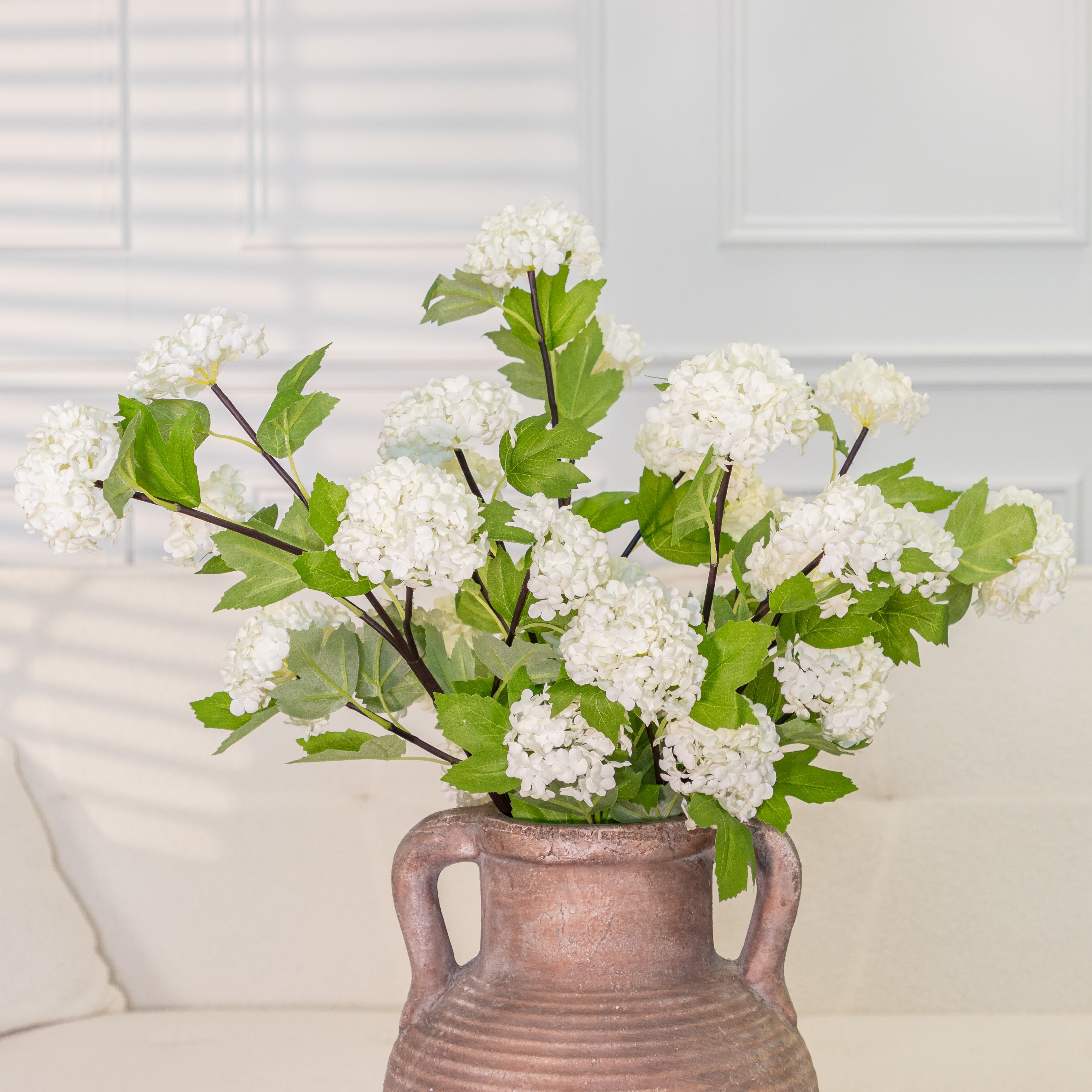 "Elegant Faux Viburnum Arrangement featuring realistic snowball-like clusters of white blooms. This maintenance-free floral display adds a touch of natural beauty to any room without the need for watering or sunlight. Perfect for year-round decoration in homes and offices" - Jessica and Adam