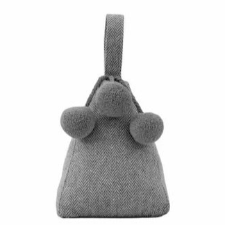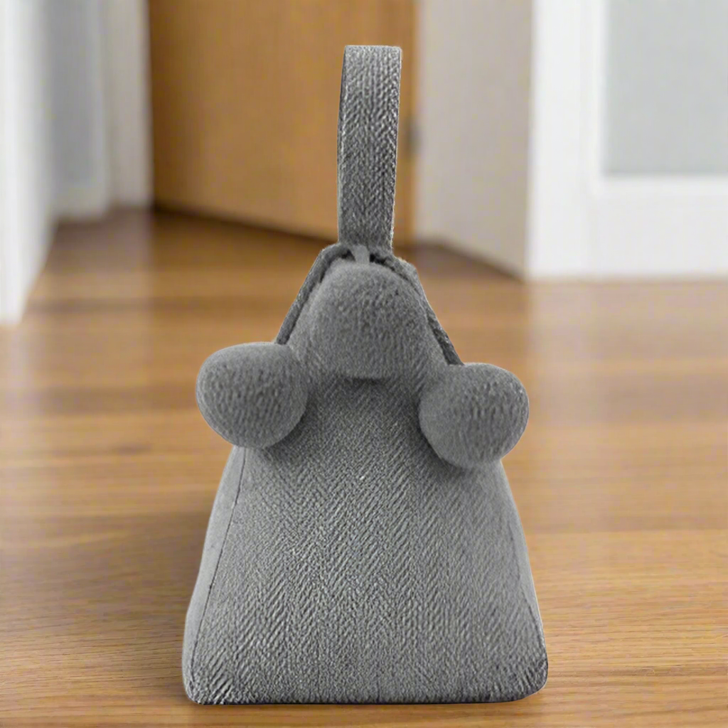 A stylish doorstop featuring cute pom pom design in a herringbone style fabric.