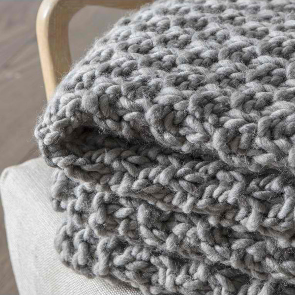 This chunky knitted moss stitched throw in grey is available in 2 colourways.  Its thick weaves give a cosy rustic feel and add texture to your home.