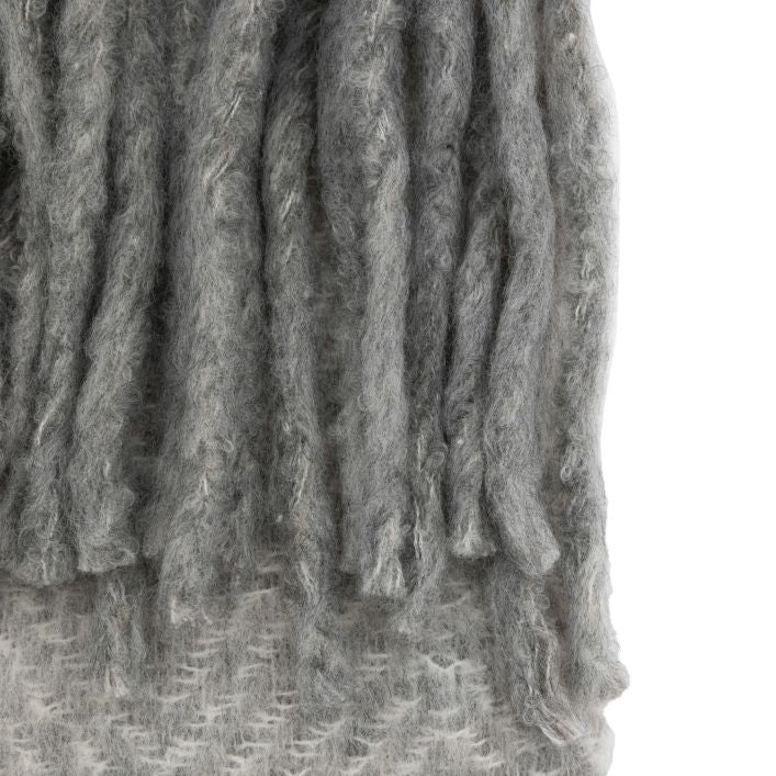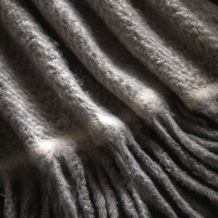 Beautifully soft mohair feel throw with two tone herringbone pattern and solid fringing detail