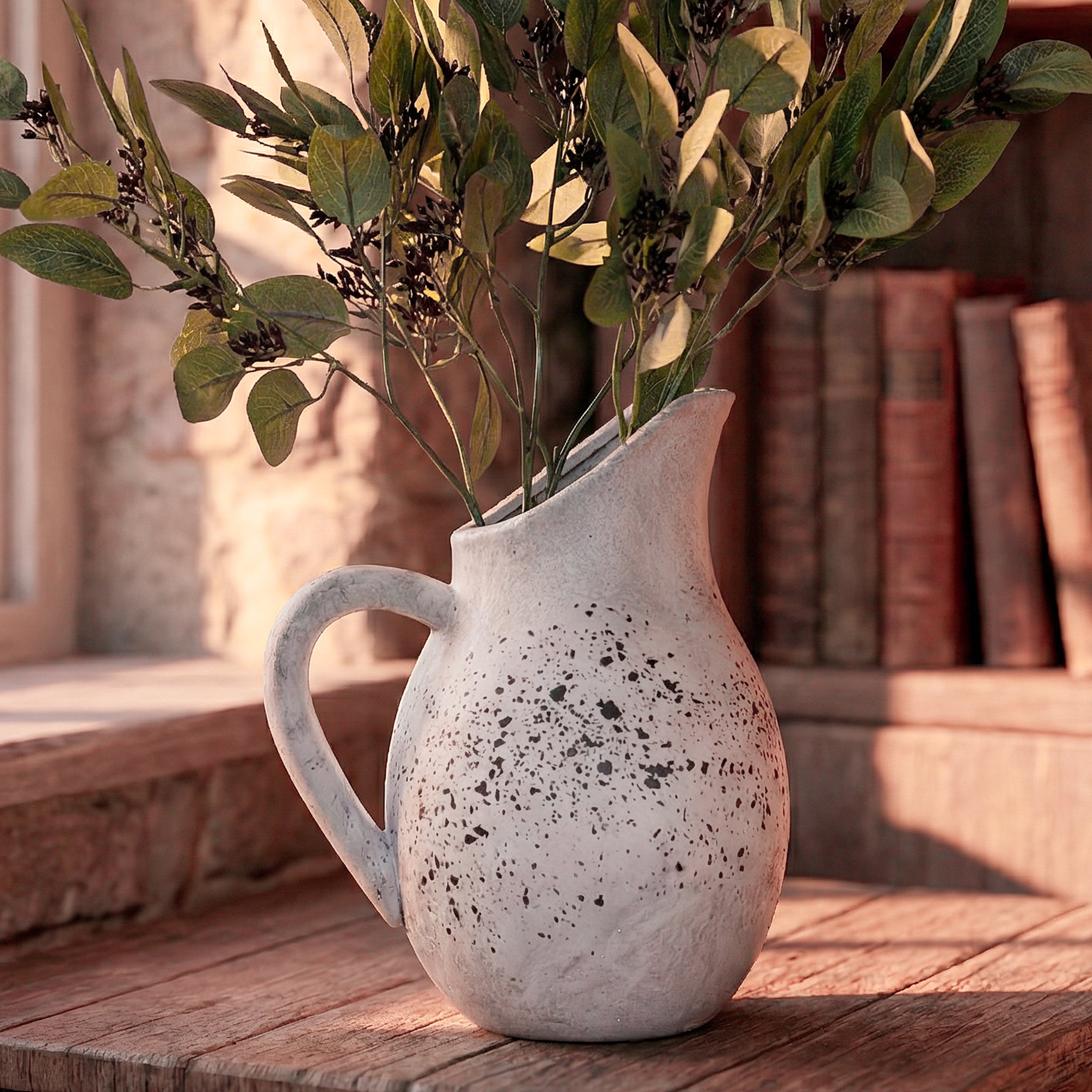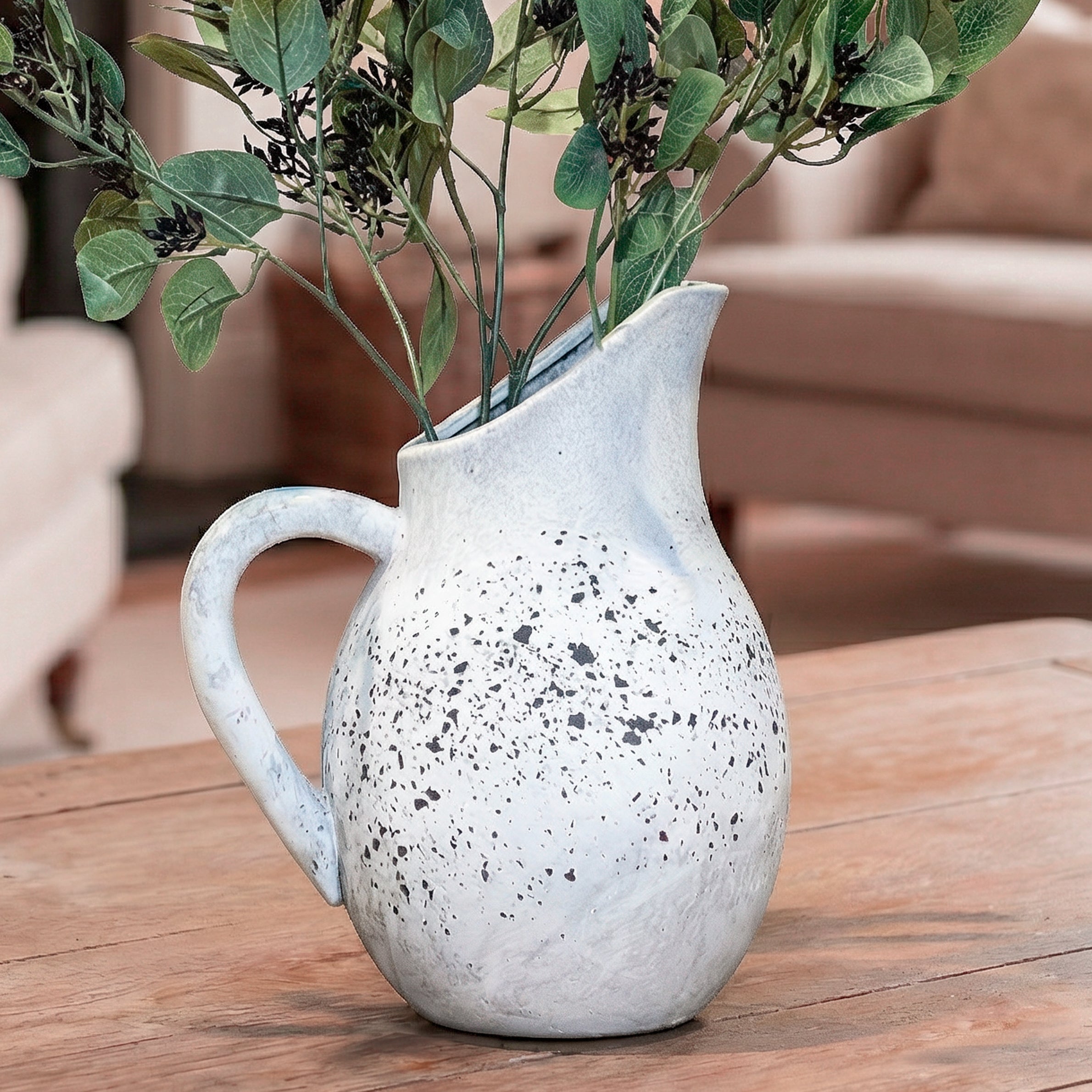 "Bring rustic charm to your home with this distressed pitcher jug. Crafted with a weathered finish that captures authentic countryside character, it's perfect for displaying faux flowers or adding vintage appeal to shelves and mantels. The timeless design complements farmhouse, cottage, and traditional interiors. A versatile accent piece that works beautifully in any room" - Jessica and Adam