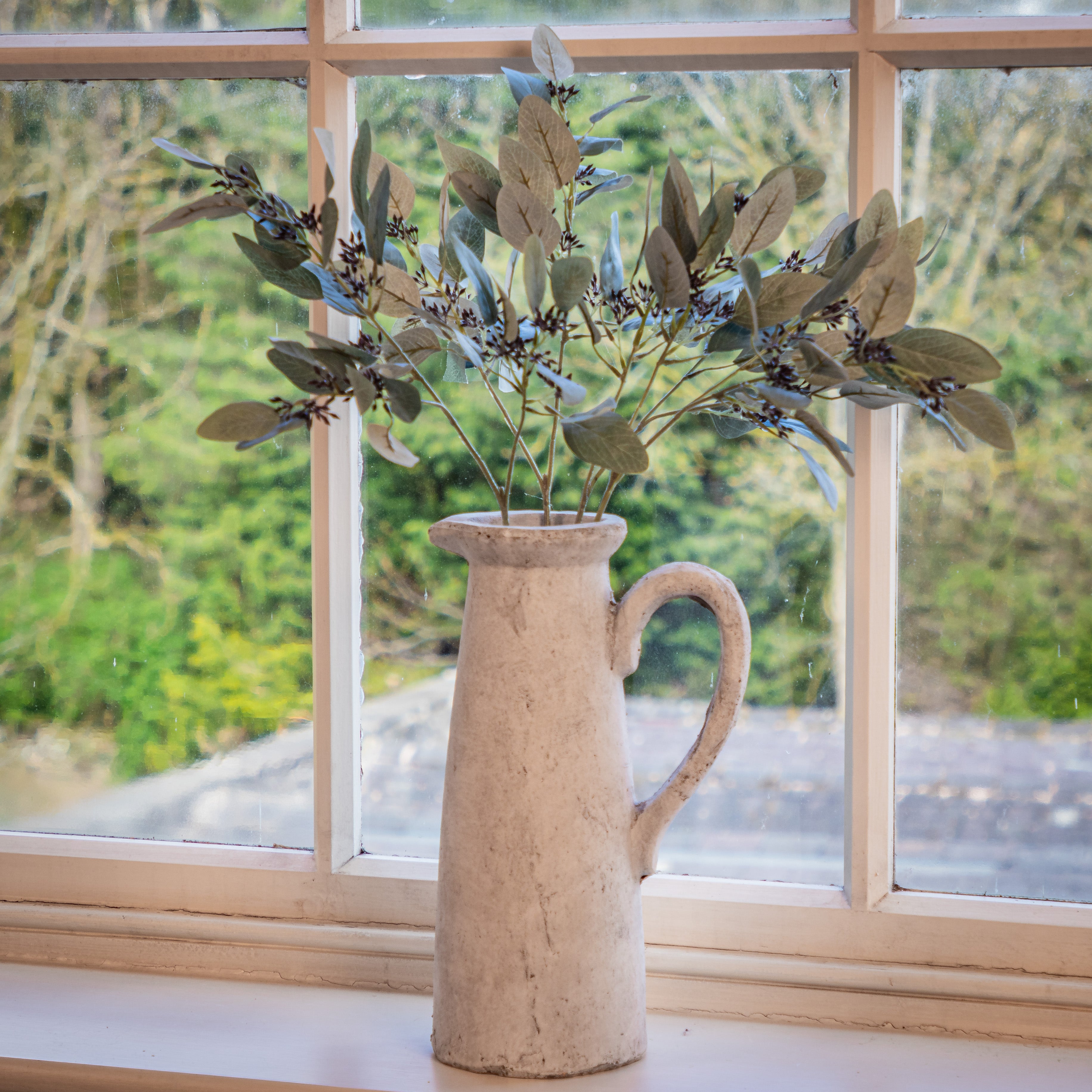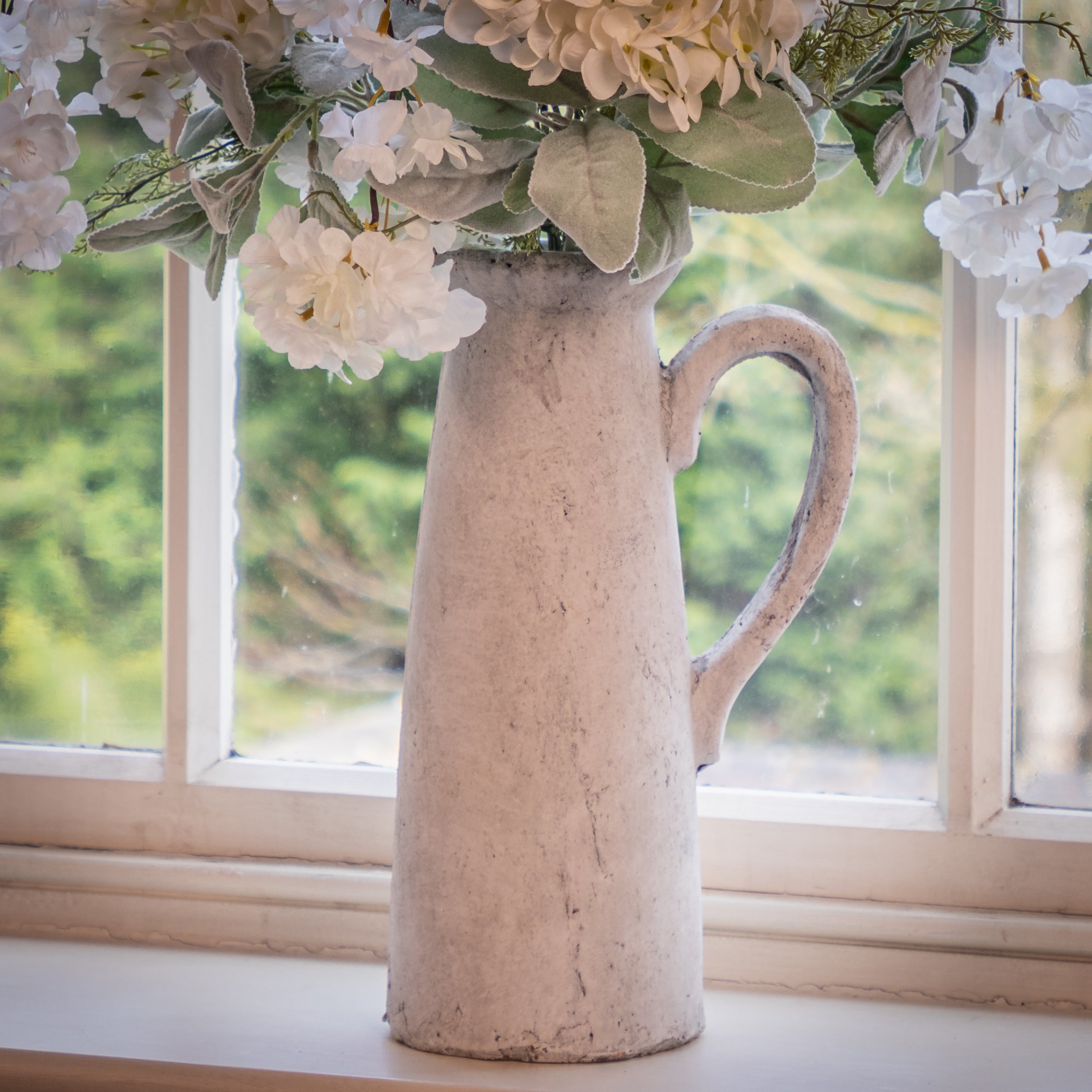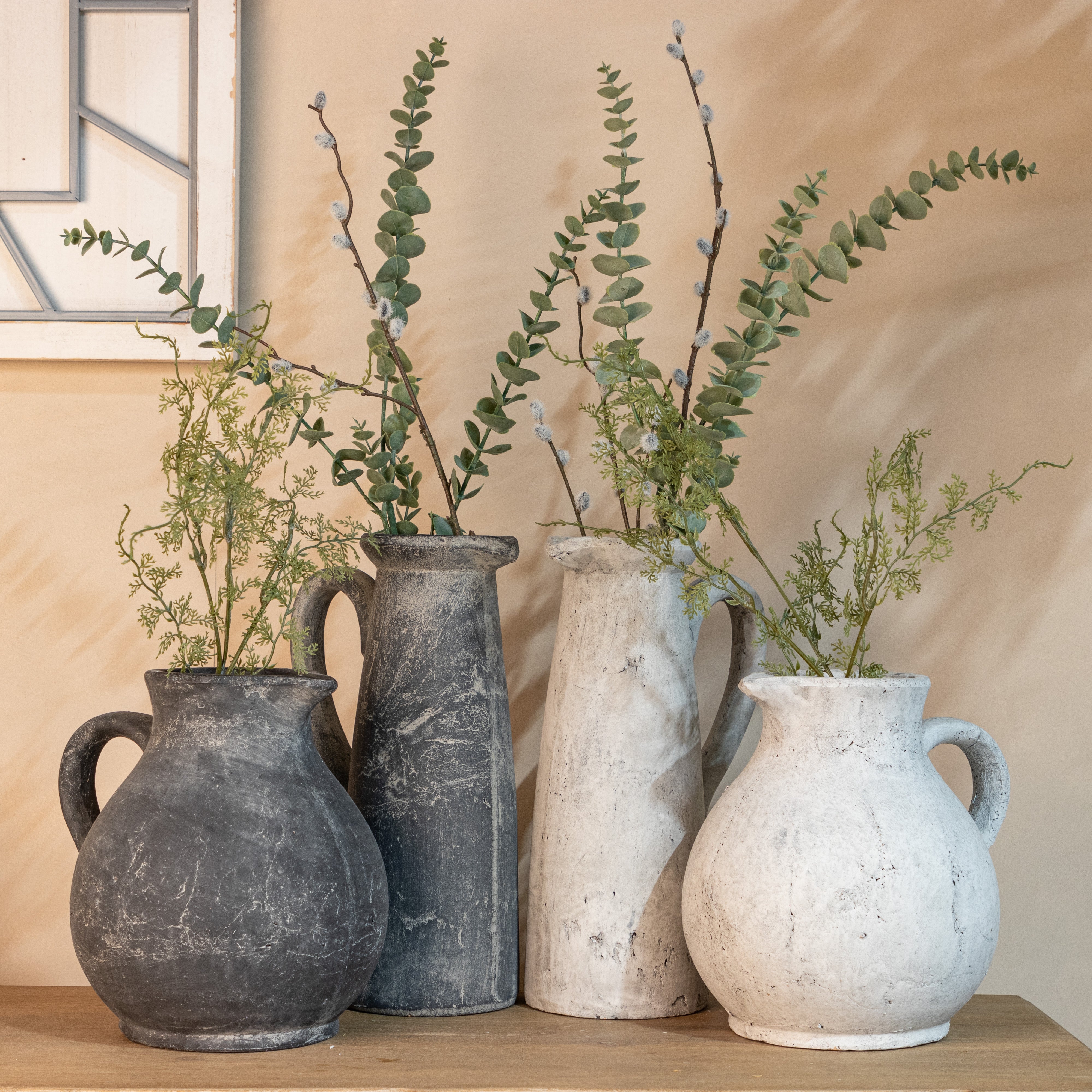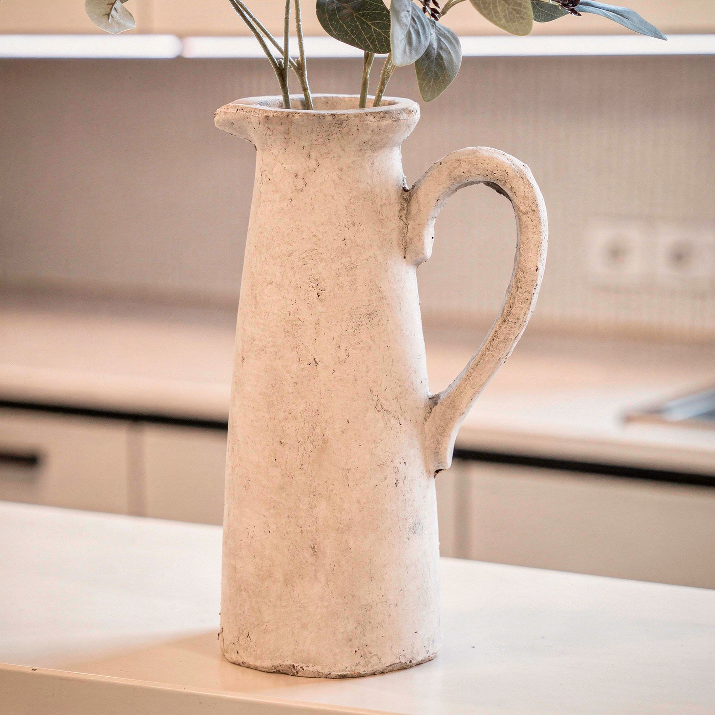 "Crafted with a sturdy rustic stone finish and standing tall, our Grey Stone Based Jug adds a touch of elegance to any space. Perfect for faux flowers, this versatile jug is a must-have for any stylish home" - Jessica and Adam