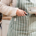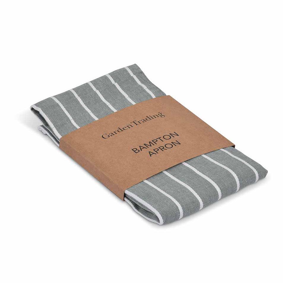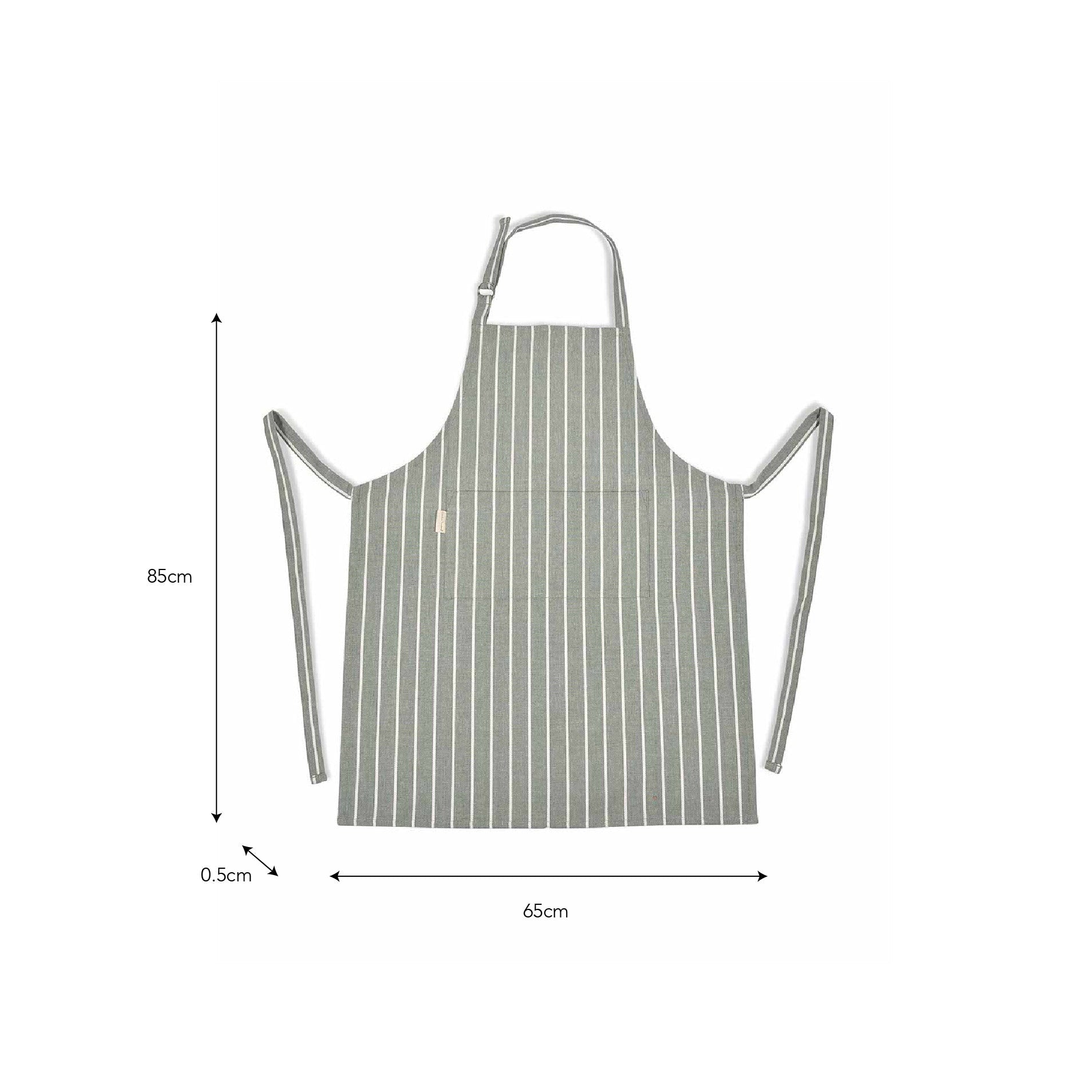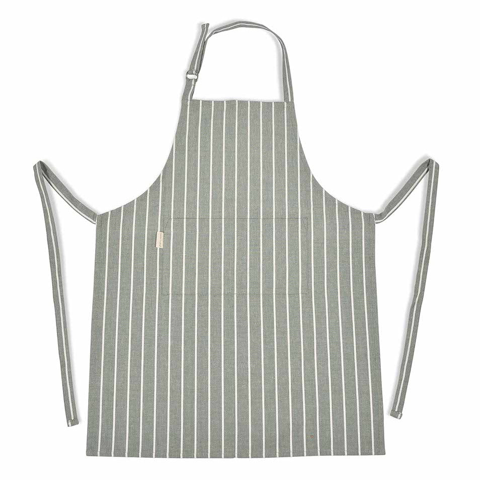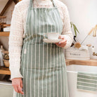 "Perfect for keen cooks, our Bampton Apron looks as good hanging up in the kitchen as it does in action at the stove. Crafted from 100% cotton in Rosemary with a warm white stripe, and with a roomy front pocket, this apron is as classic as they come. Back ties and adjustable neck ties achieve the perfect fit.
