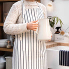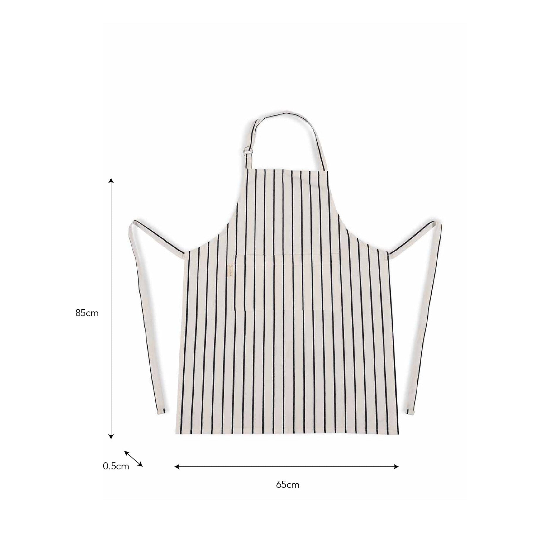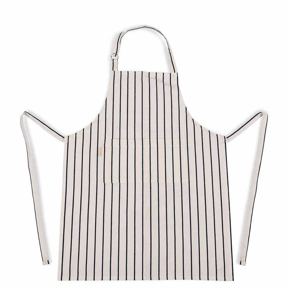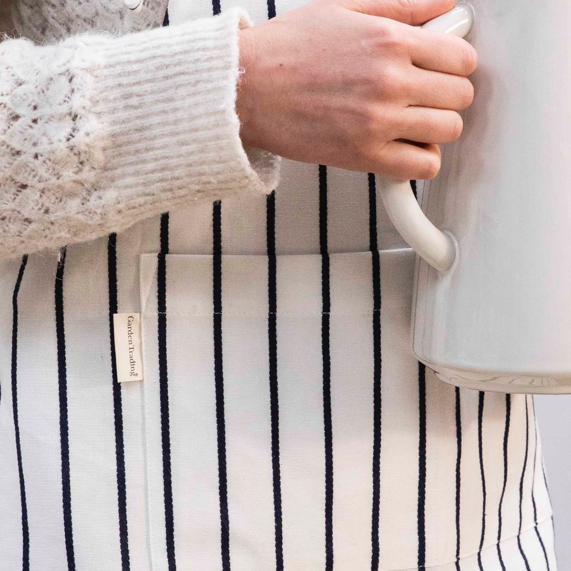 "Perfect for keen cooks, our Bampton Apron looks as good hanging up in the kitchen as it does in action at the stove. Crafted from 100% cotton in Warm White with an Ink Stripe, and with a roomy front pocket, this apron is as classic as they come. Back ties and adjustable neck ties achieve the perfect fit.