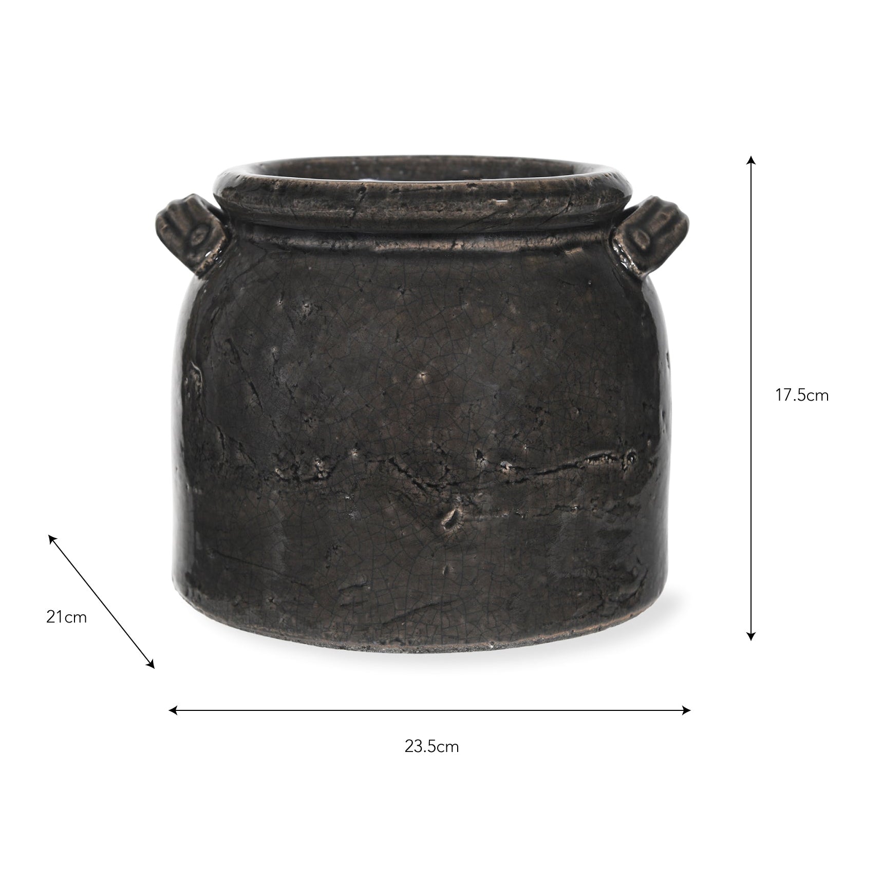"Handcrafted with a crackle charcoal glaze this Ravello Pot with Handles is multi-functional for use around the house. The chunky... See Description