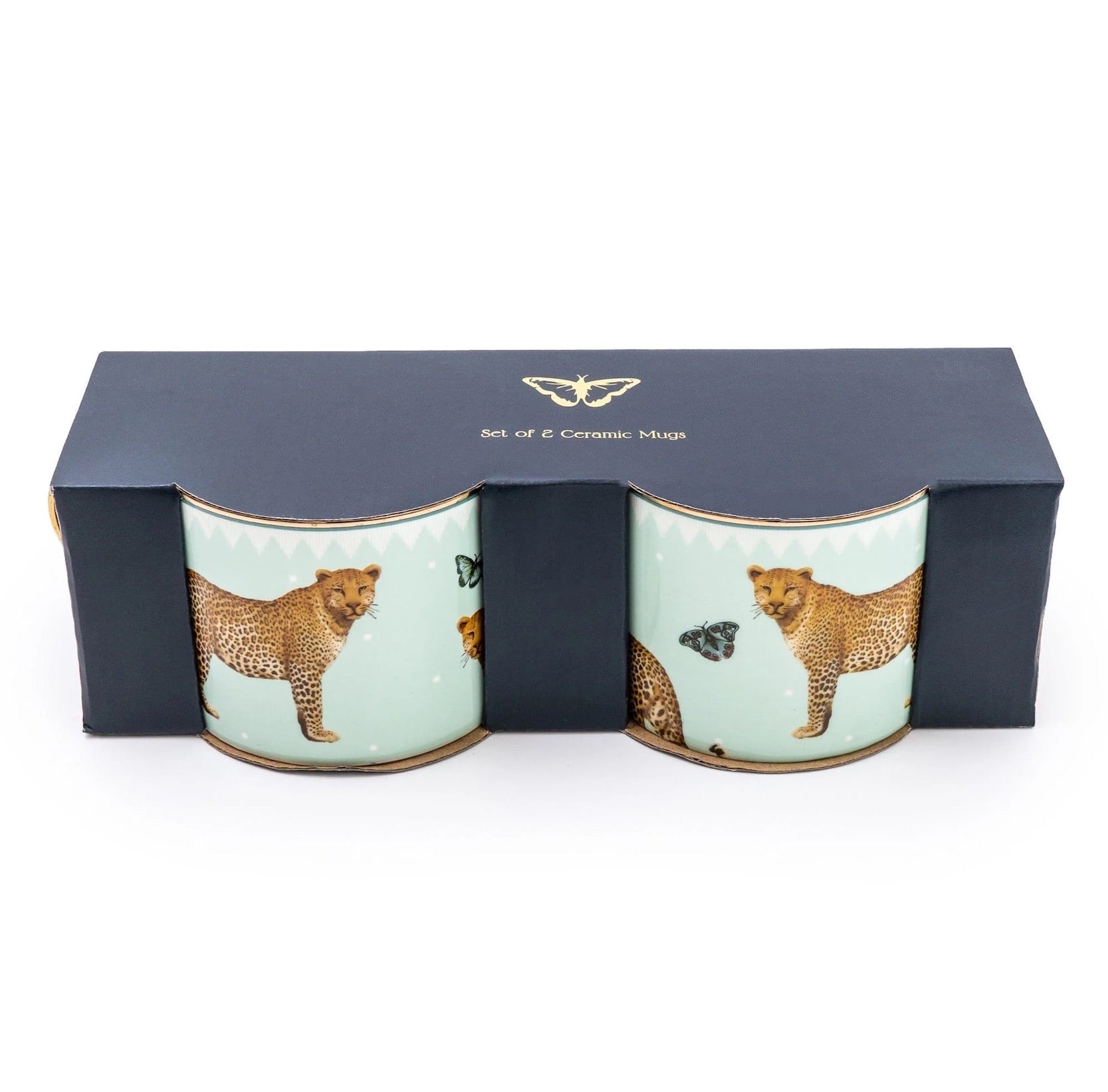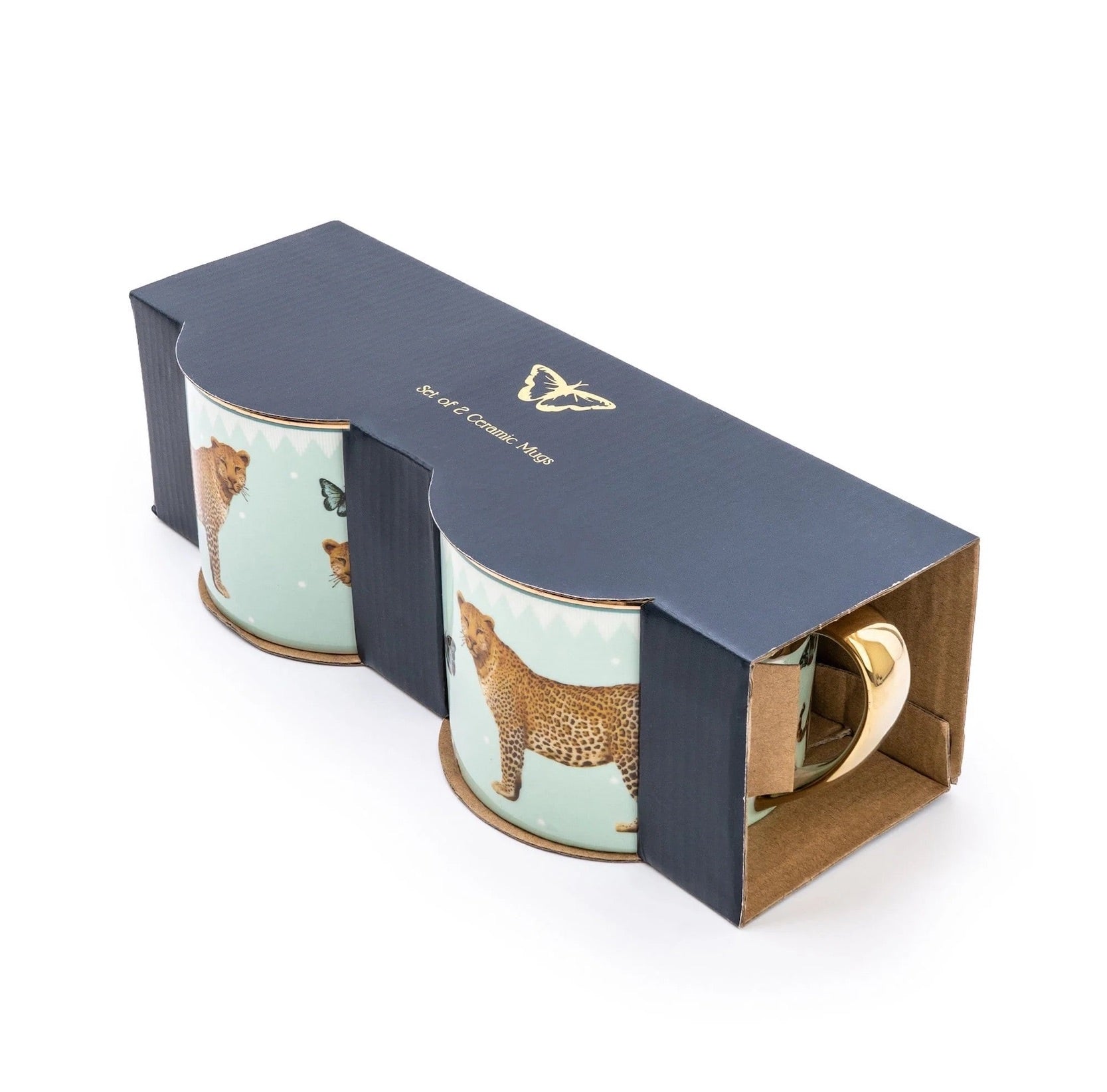This set of 2 pale green mugs with a leopard design and electroplated handles ooze Miami Glamour! Perfectly packaged in a gift box.