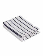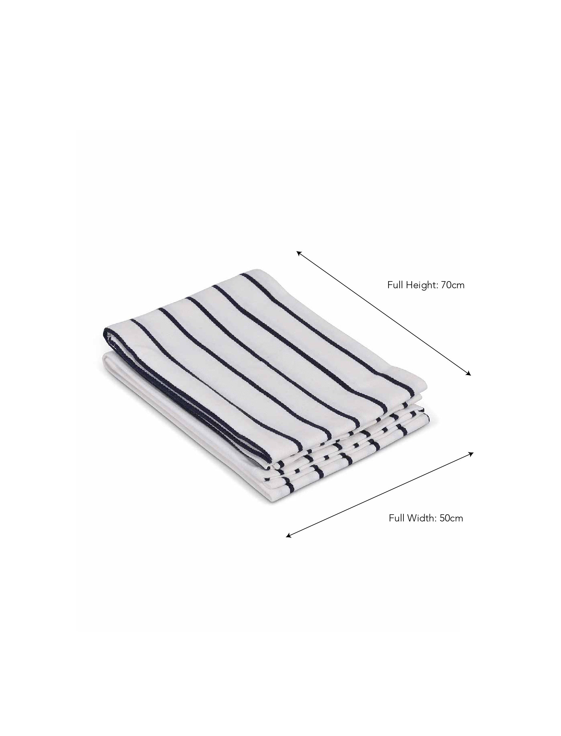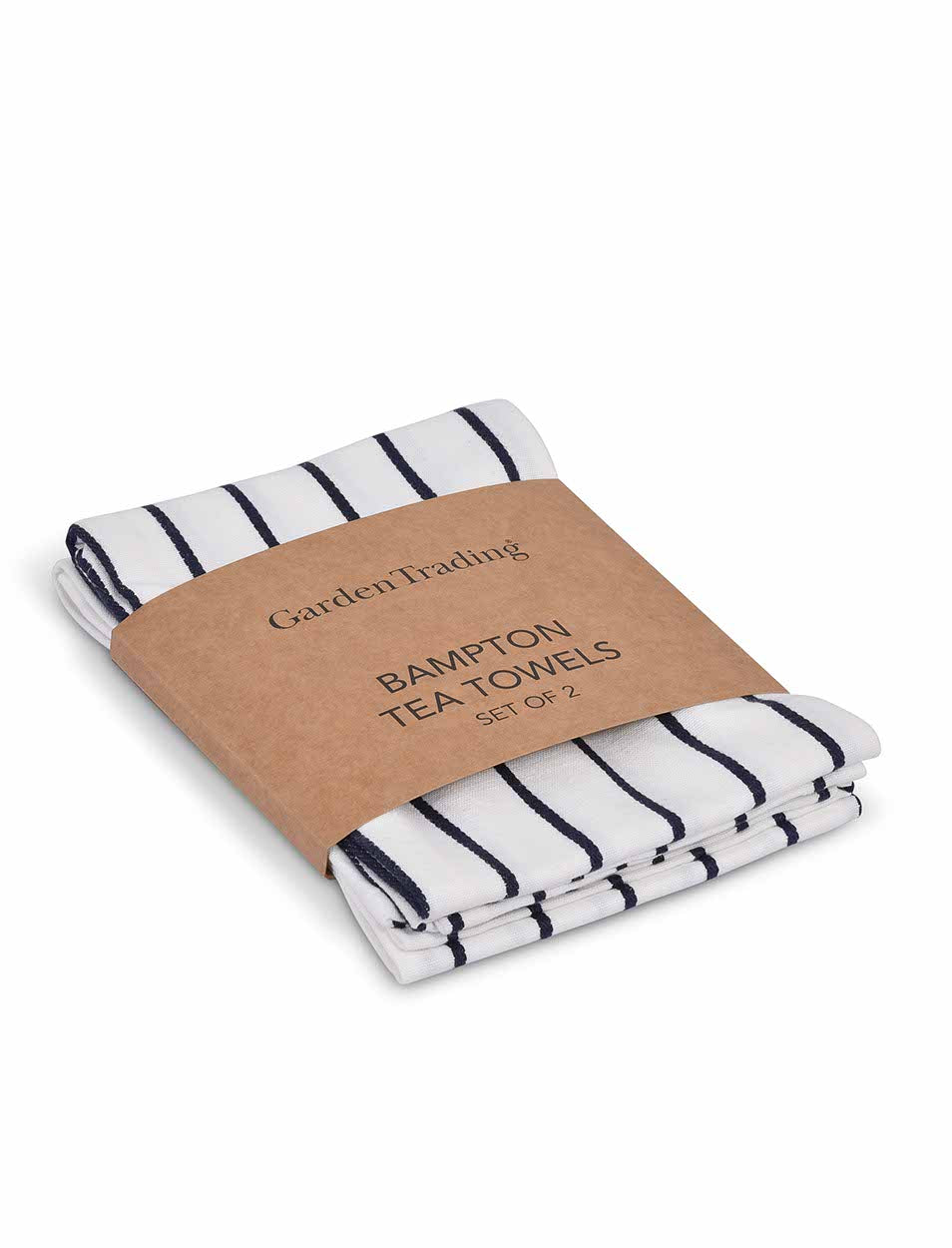 "Drying cutlery and crockery is a pleasure with our Bampton Tea Towels. This traditional duo of tea towels is crafted from 100% cotton in classic Warm White with an Ink stripe. Each tea towel has a handy hanging loop, making them easy to hang when drying. They come immaculately folded with a printed Kraft wrap tag ready to give as a gift. Complete the set with our matching Bampton Apron in Warm White" - Jessica and Adam