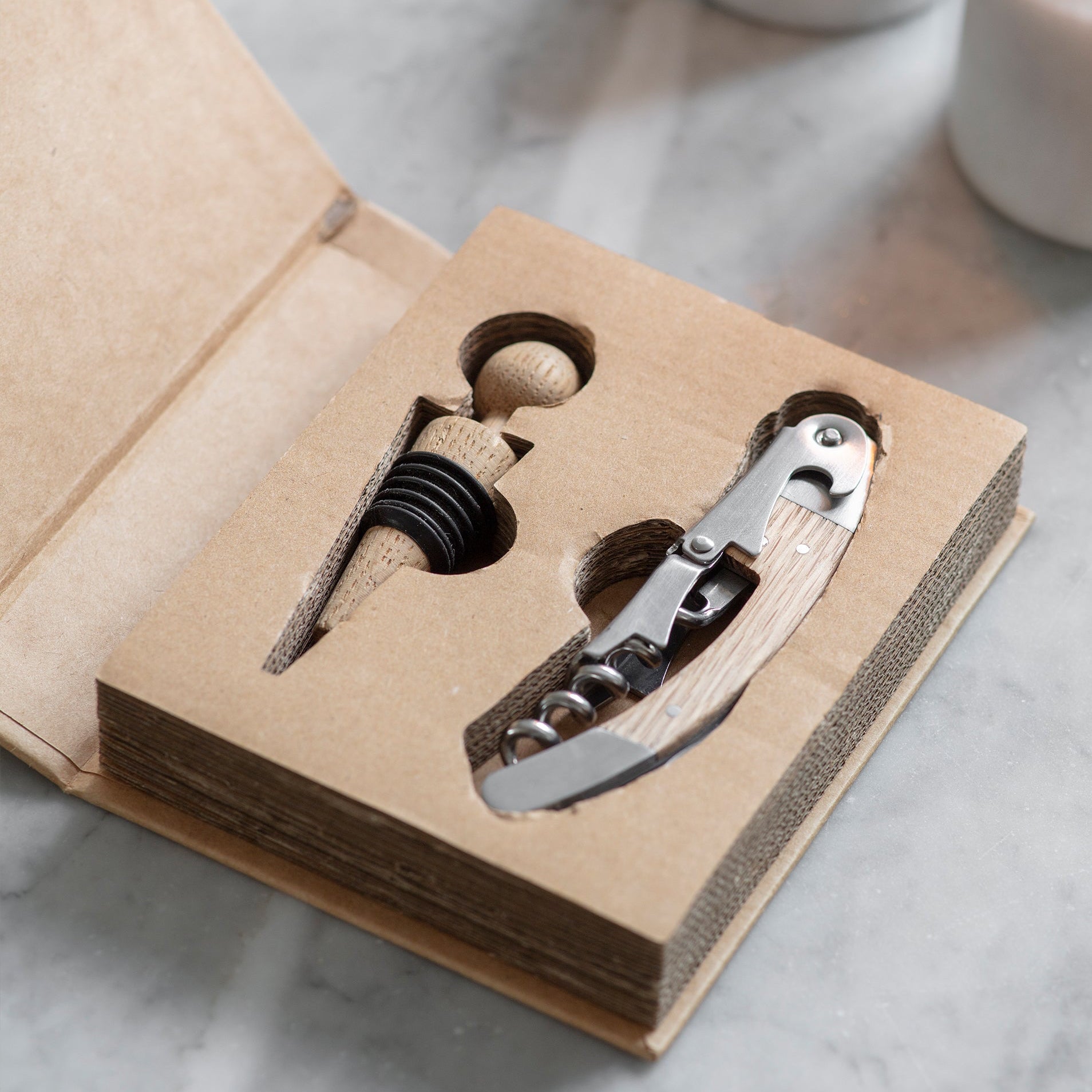 "When wine o'clock arrives, have our Bottle Opener and Stopper Set to open, serve and store in style. Perfect gift or for your own use" - Jessica and Adam