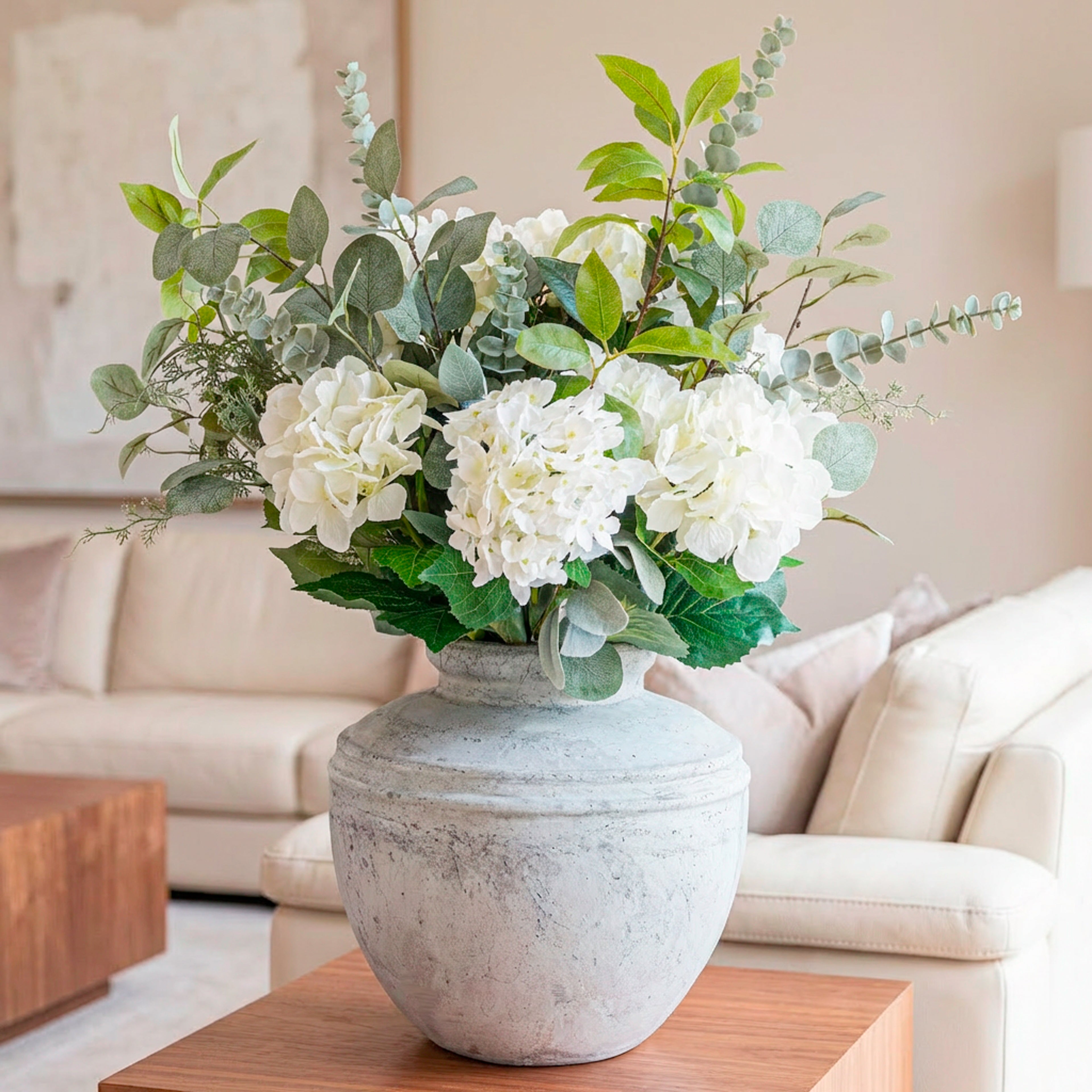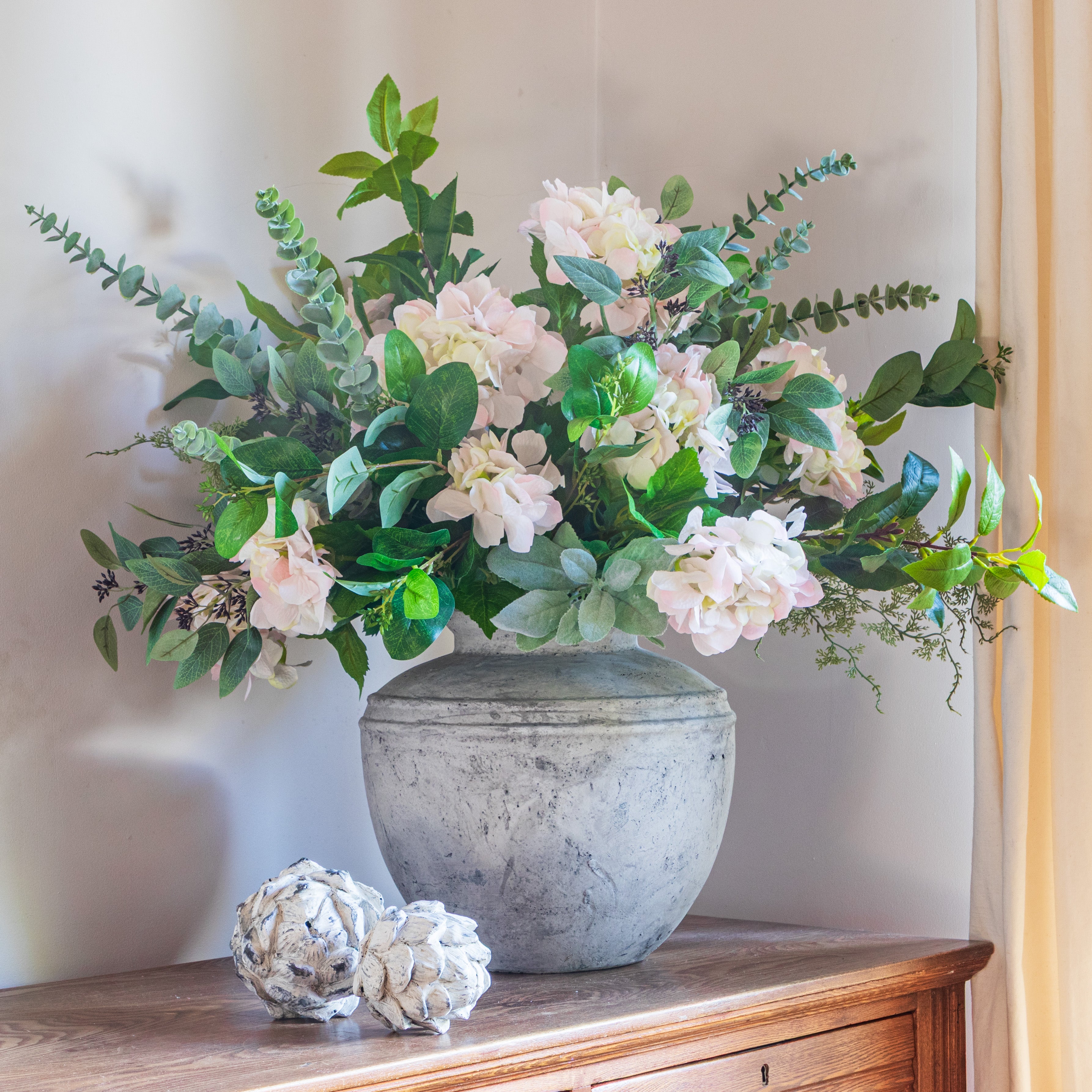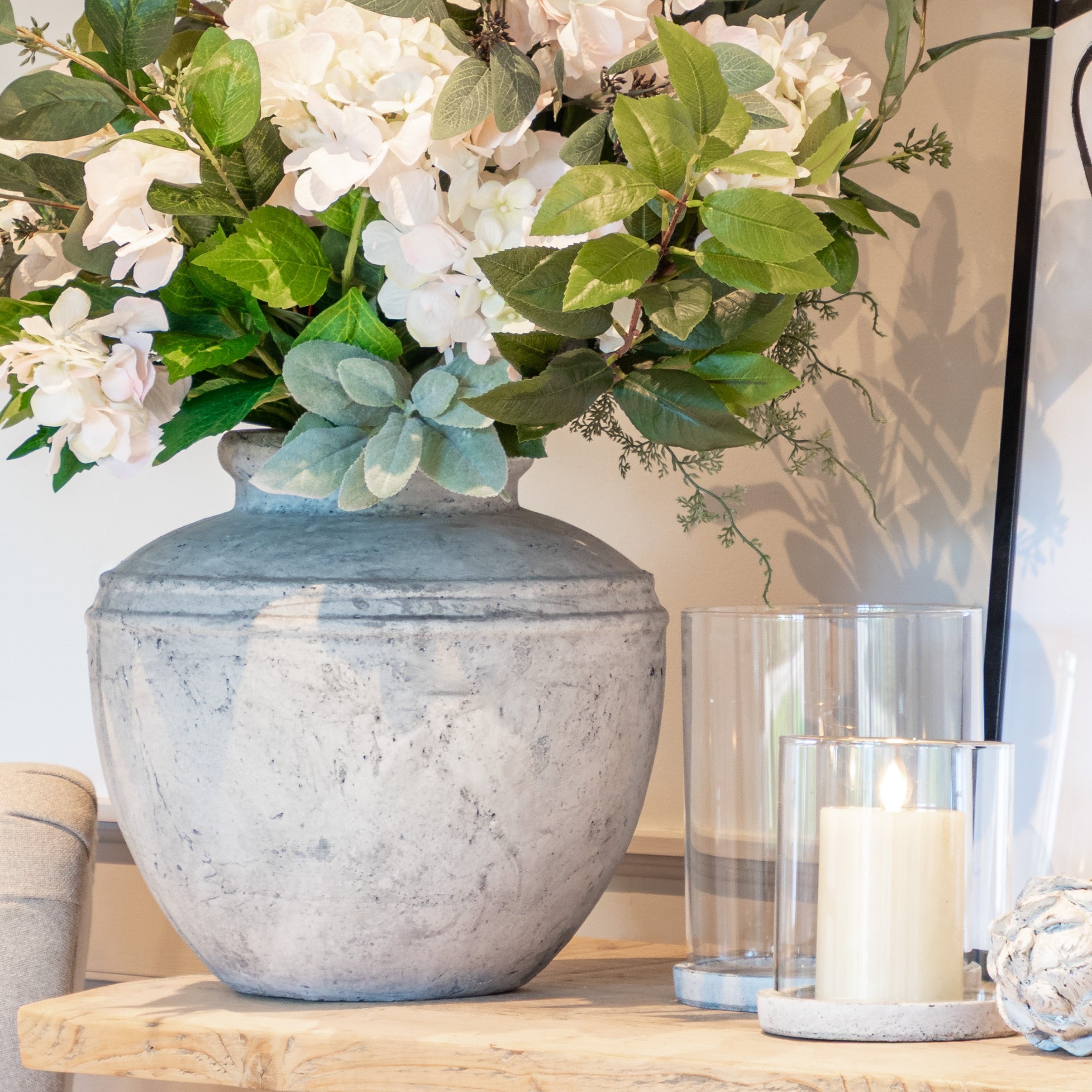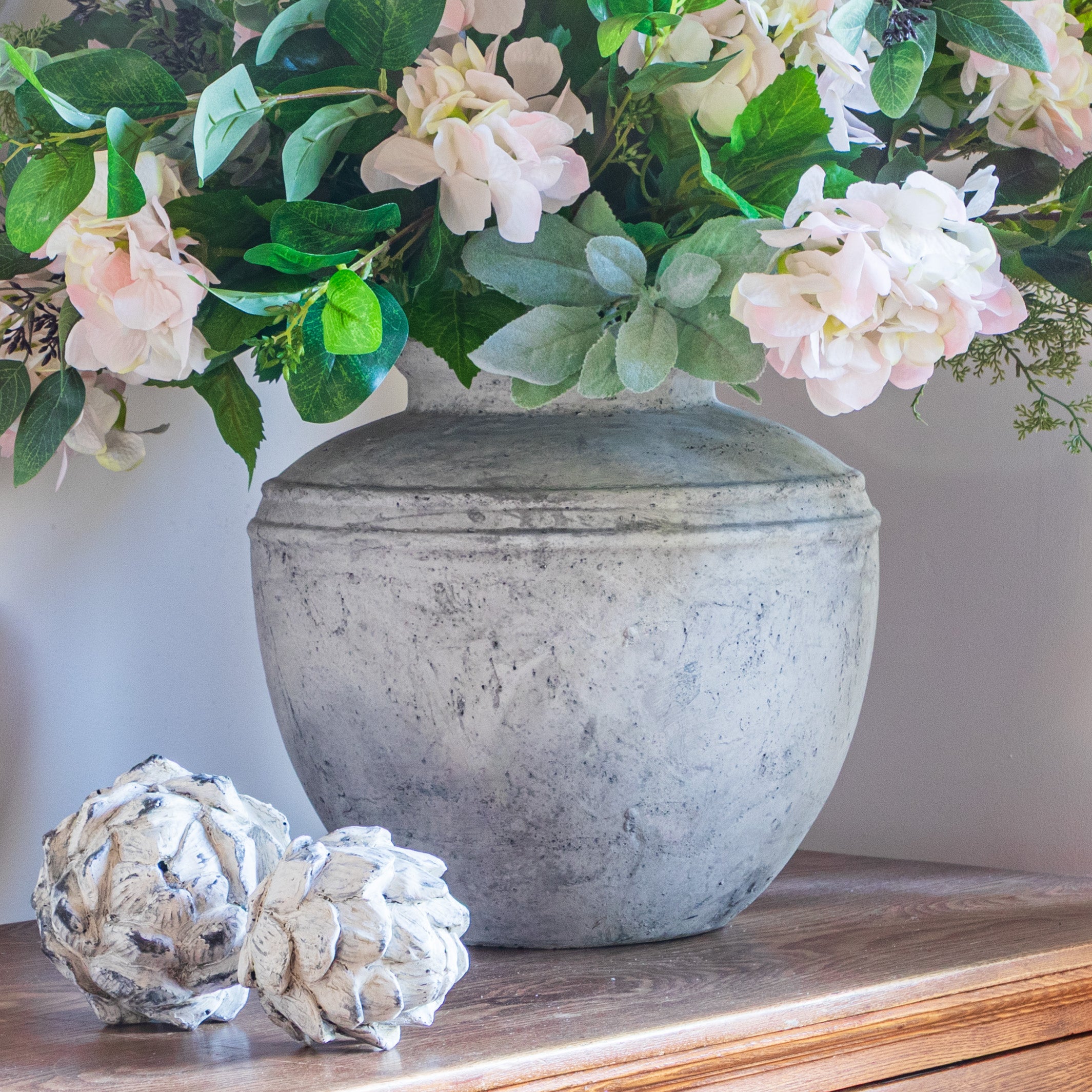 "This Large Light Grey Rustic Vase adds a touch of understated elegance to any room. Handcrafted with a rustic finish, it can hold large floral arrangements or stand alone as a statement piece" - Jessica and Adam