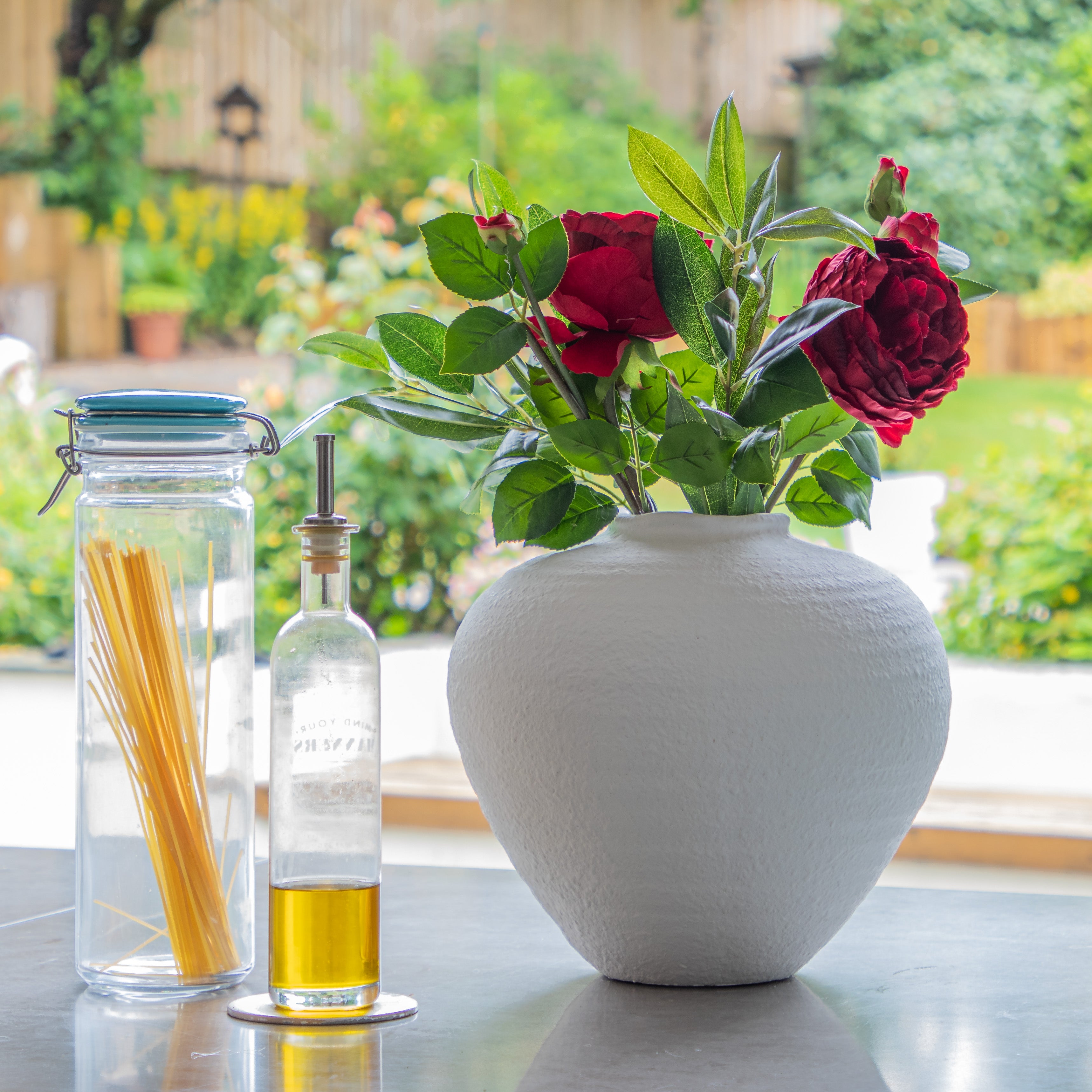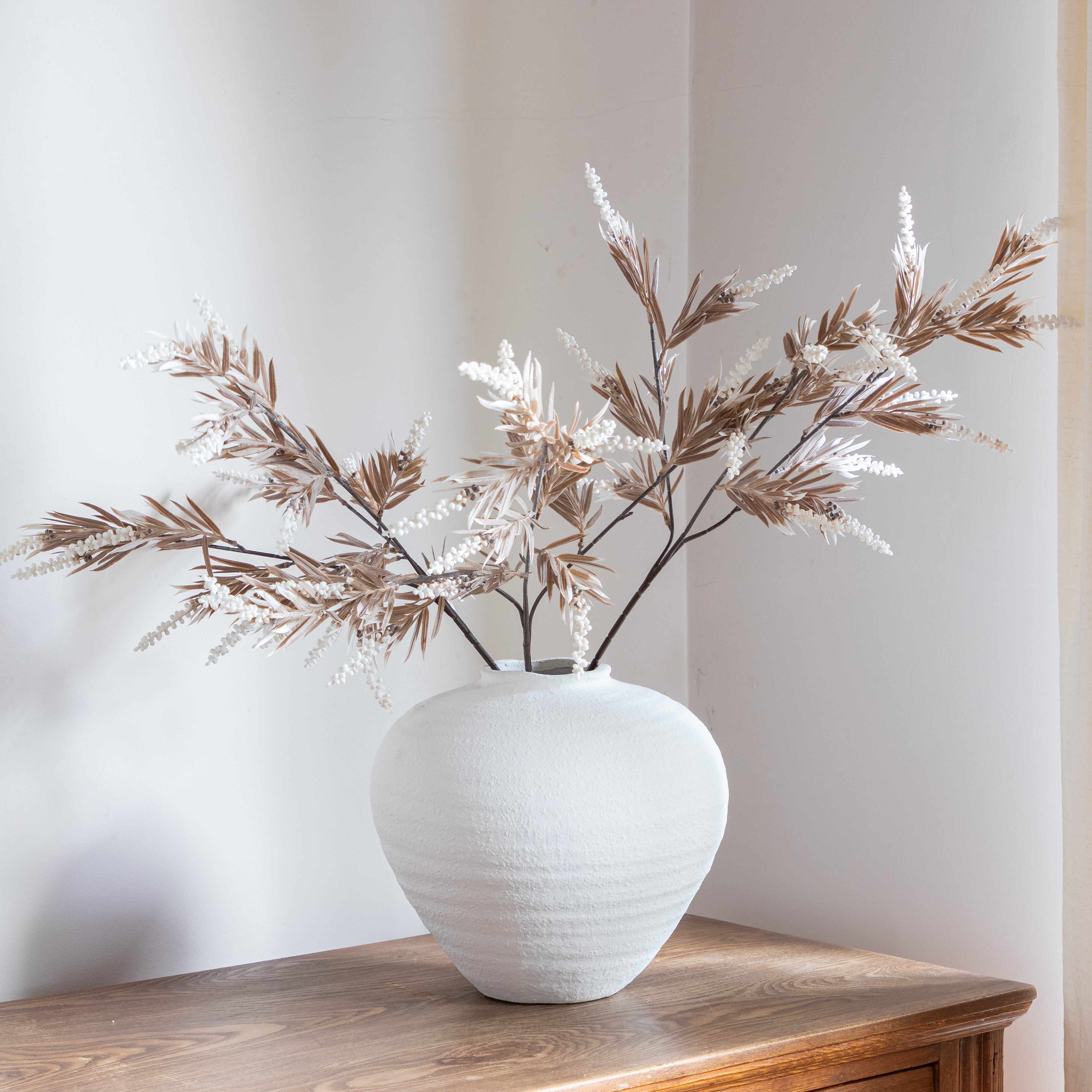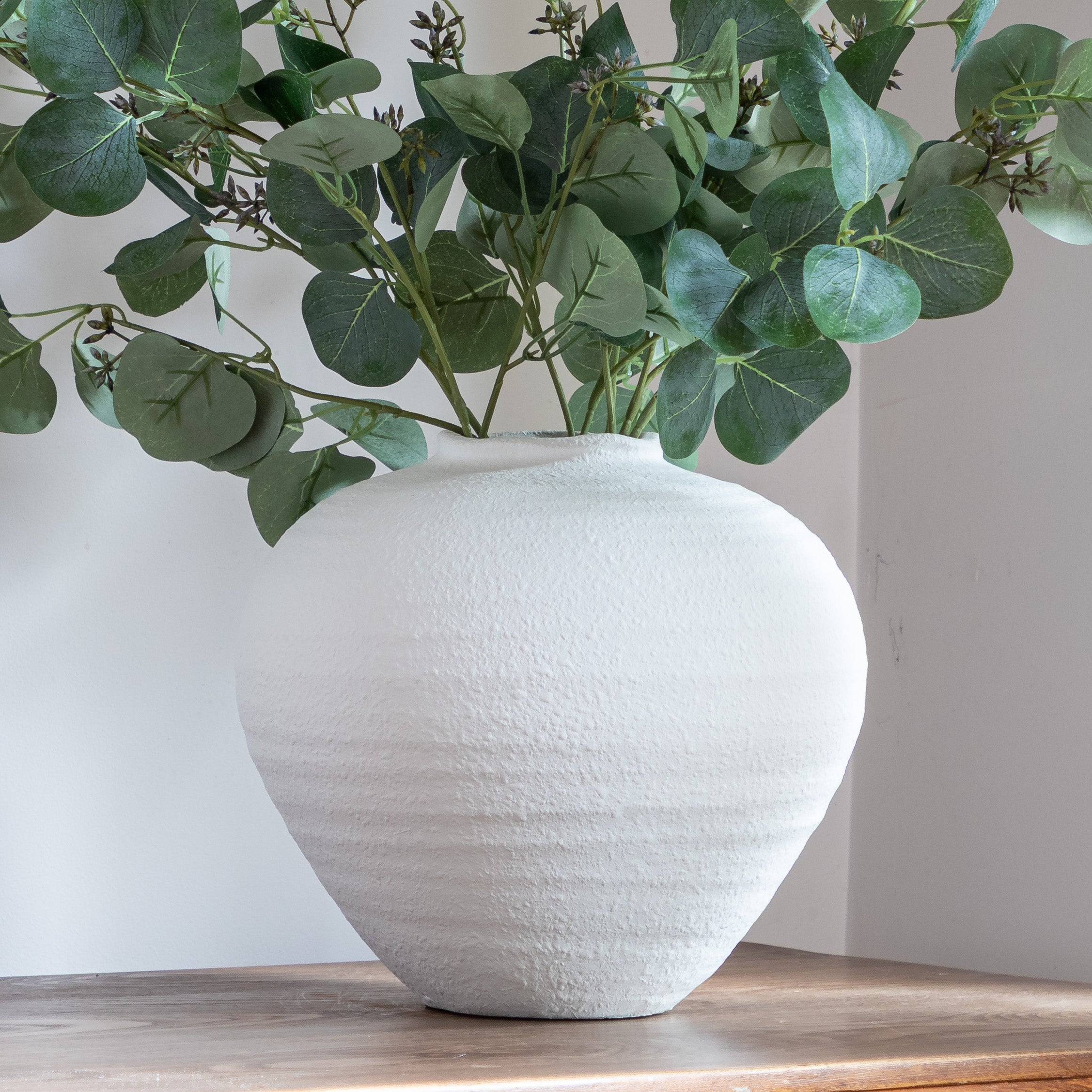 "We are really impressed by this new to us rustic distressed shaped matt white vase. The size is just perfect to display our Faux Flowers in and the contemporary white finish makes it neutral for all room colours" - Jessica and Adam