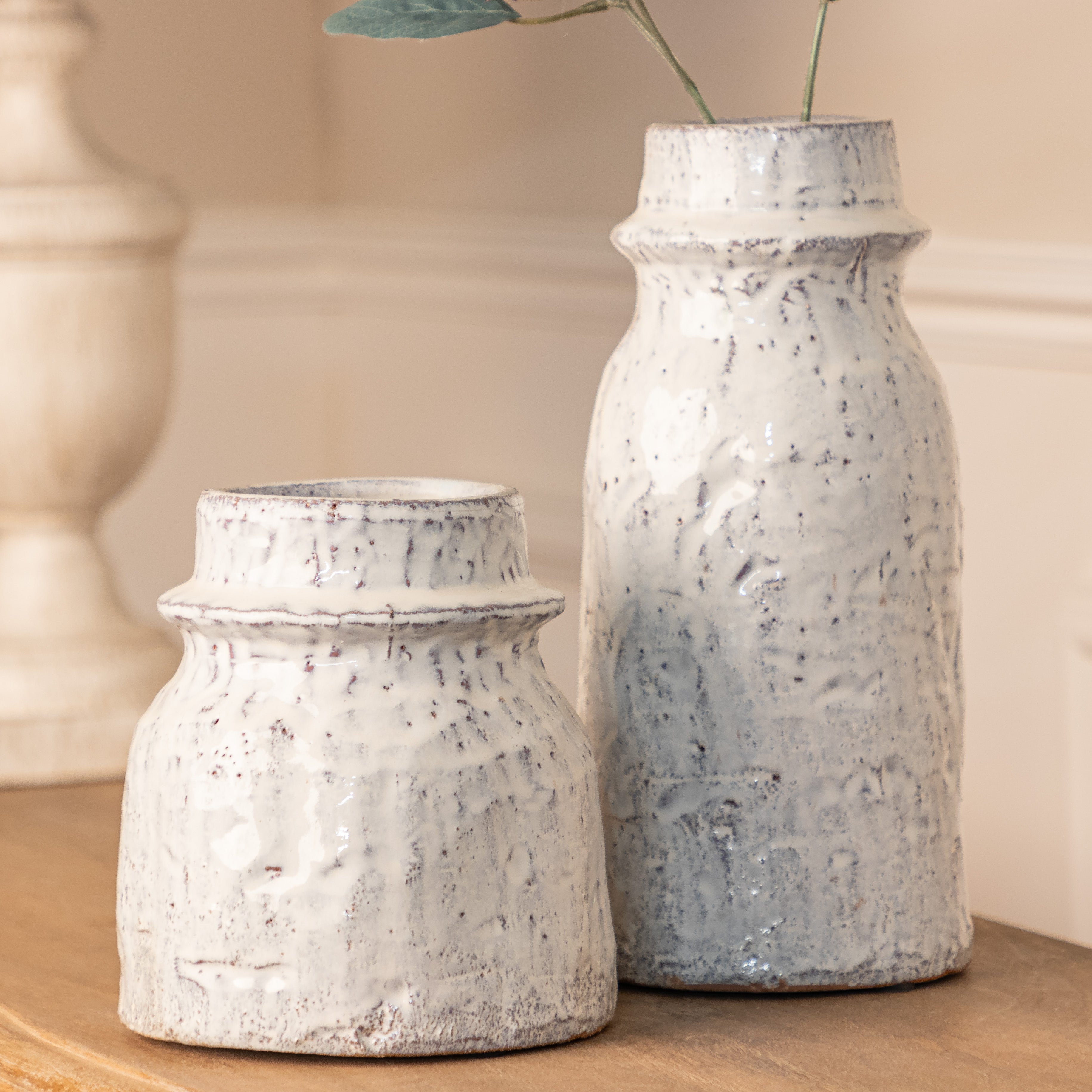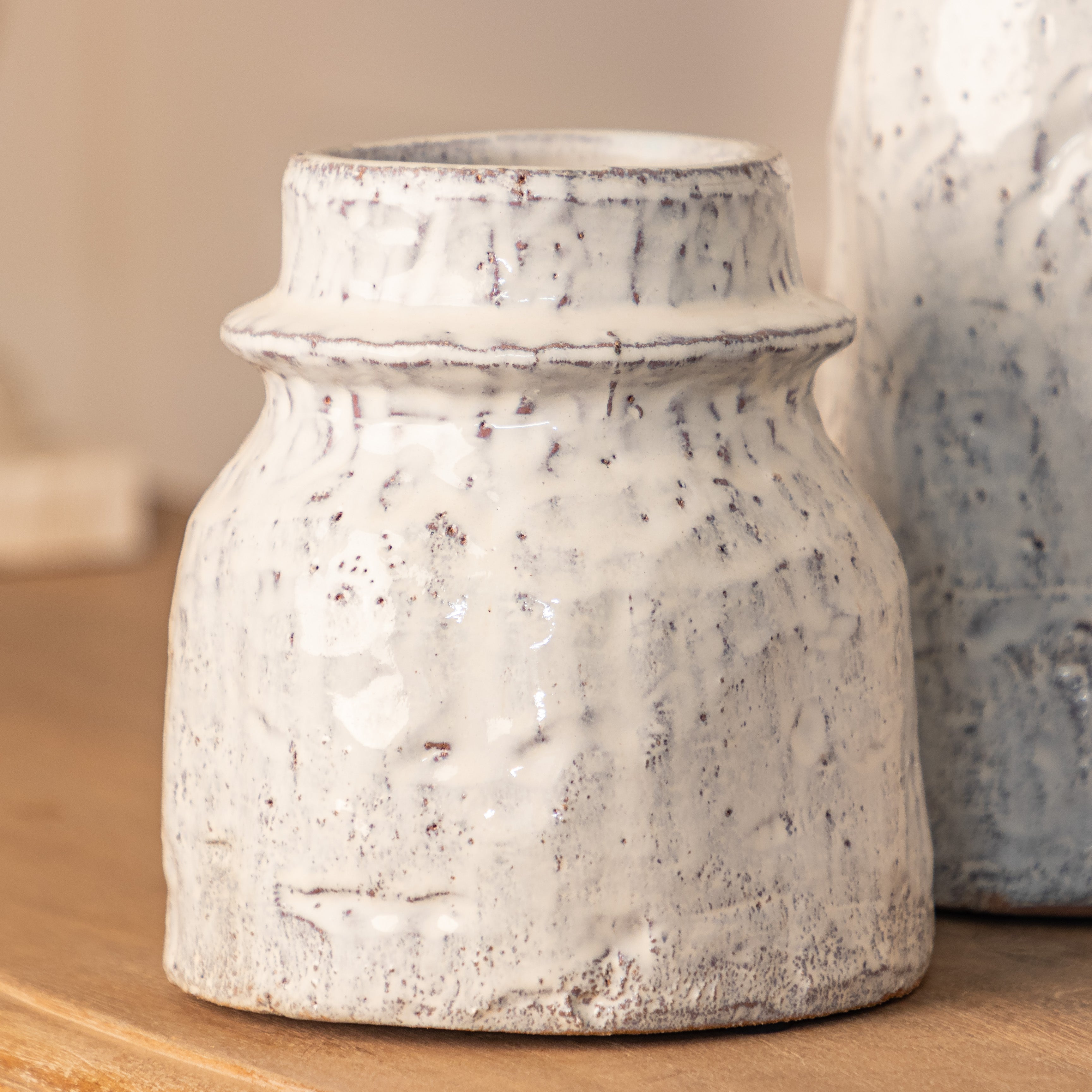 "These beautiful pots work equally well alone or as a matching pair. Finished in an off white rustic glaze each piece is handmade. Purchase both together and save £3" - Jessica and Adam