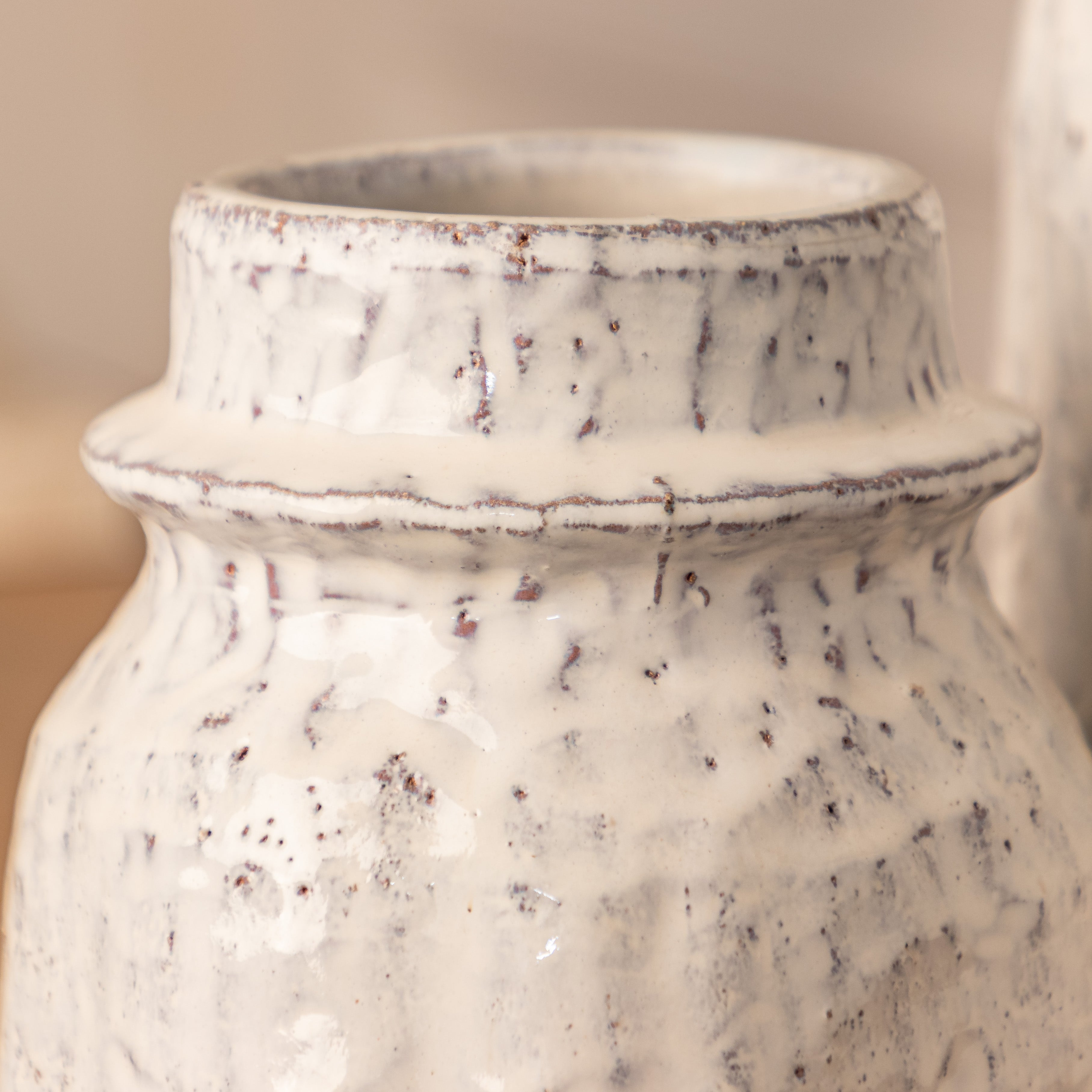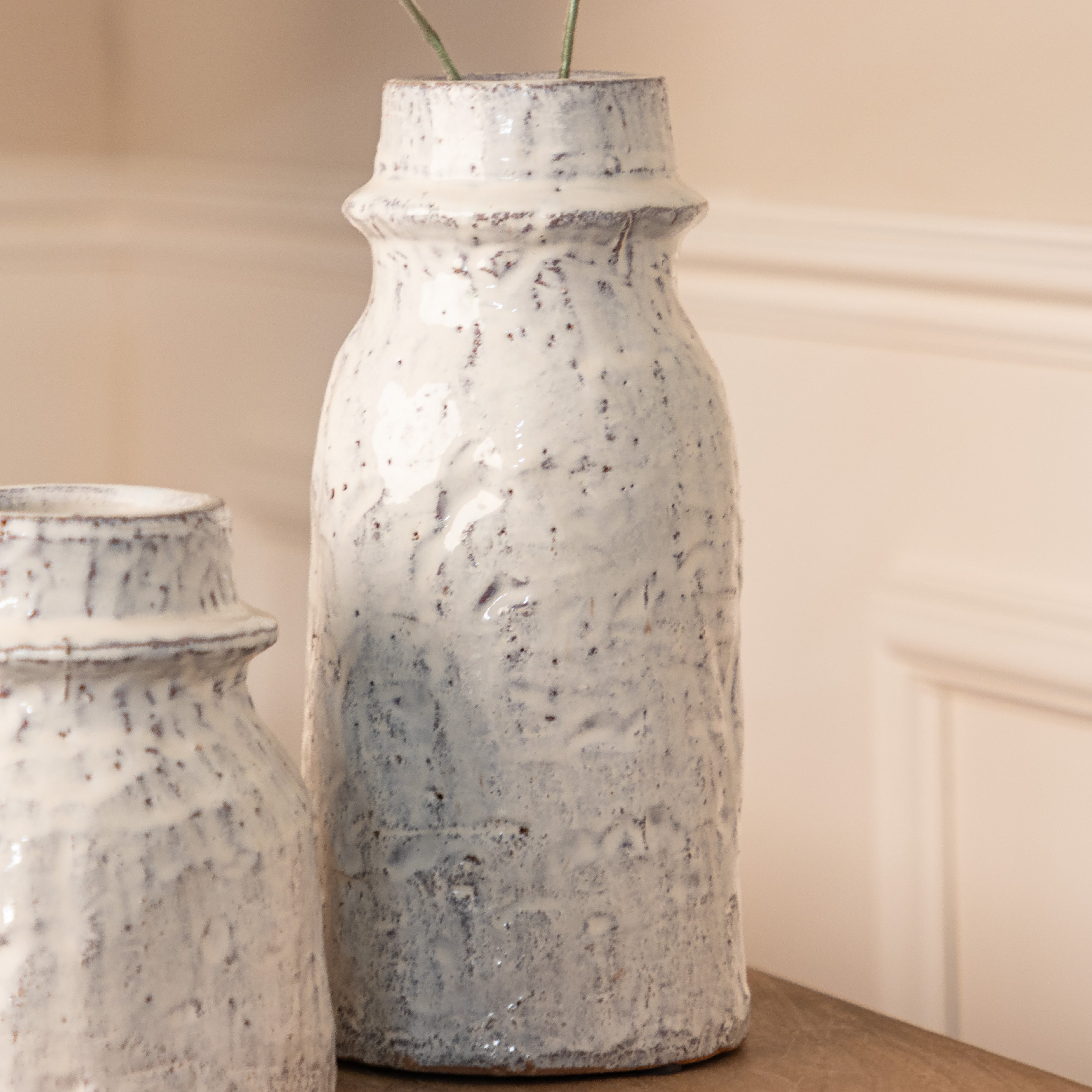 "These beautiful pots work equally well alone or as a matching pair. Finished in an off white rustic glaze each... See Description
