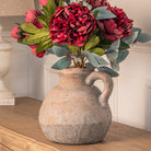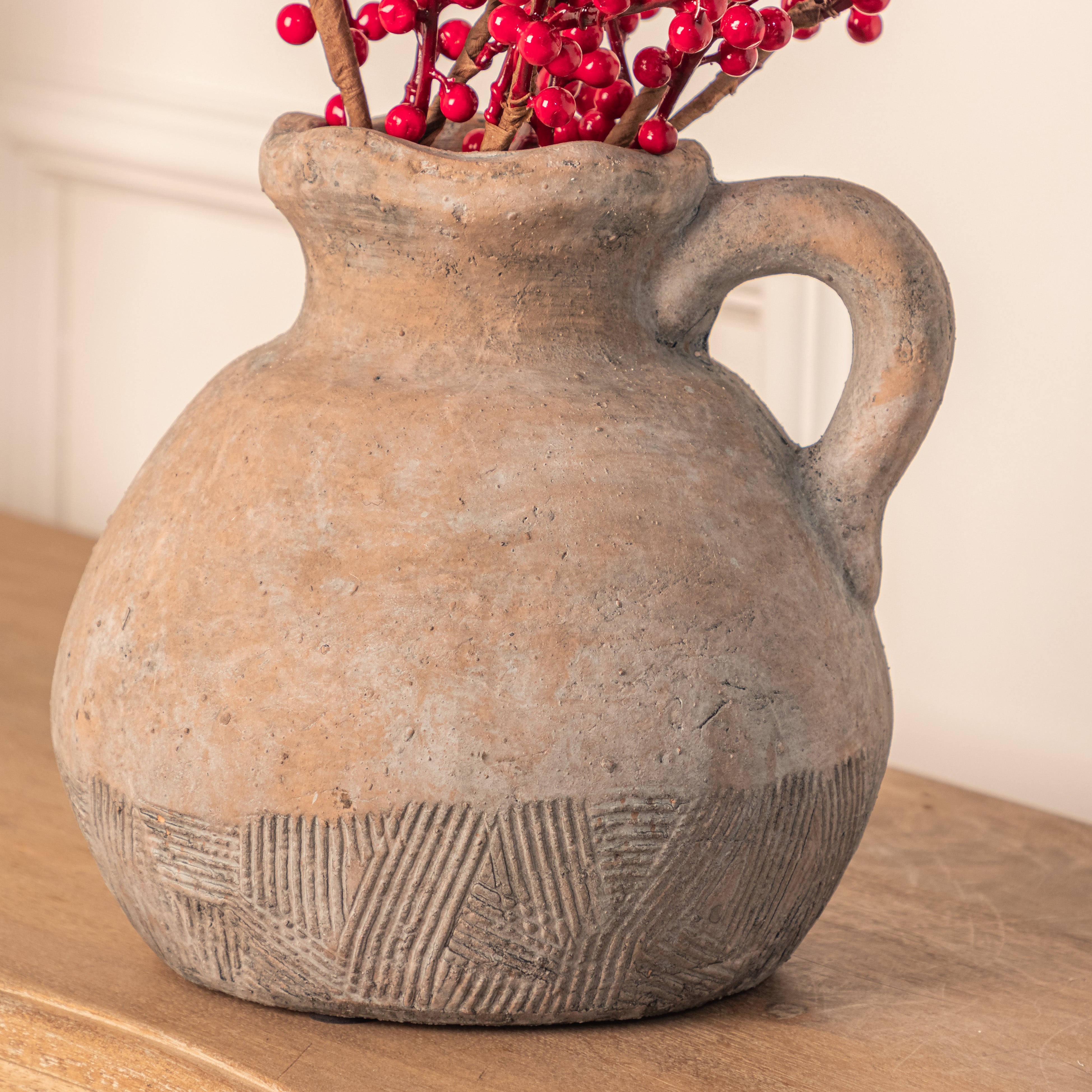 "This Patterned Terracotta Brown Round Jug is hand crafted with its intricate and unique lower pattern adding a touch of elegance to any home decor" - Jessica and Adam