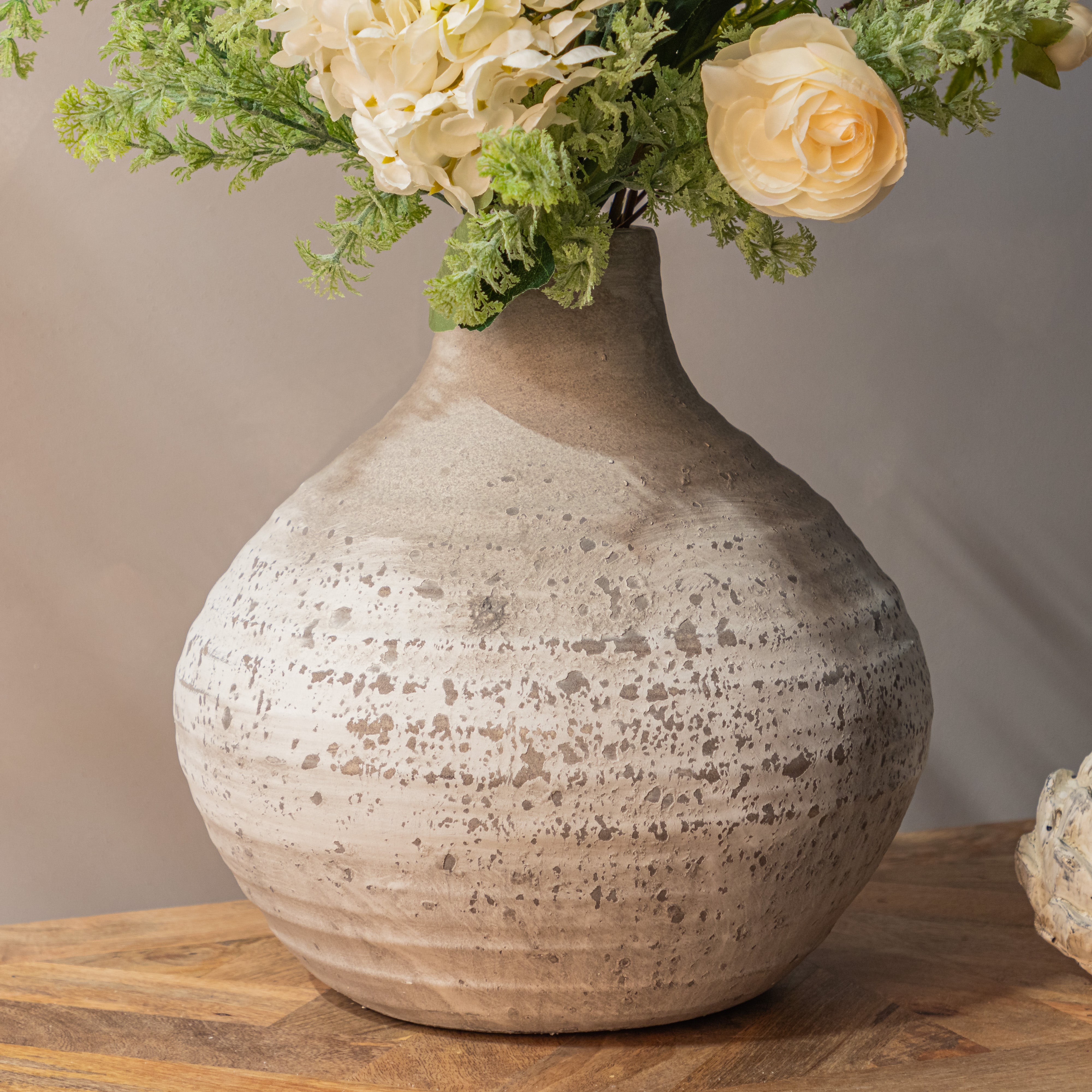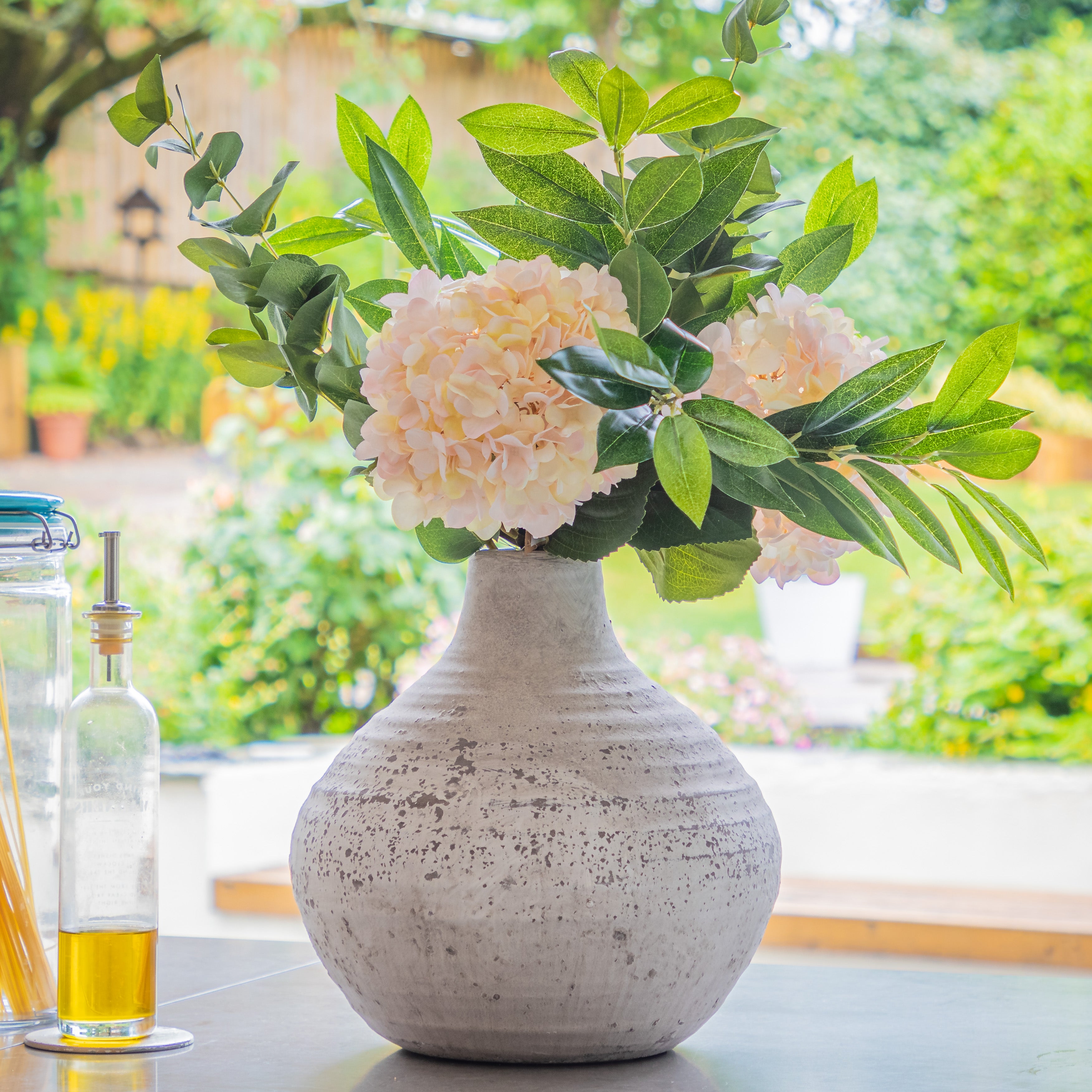 "We are really impressed by this new to us Rustic Grey Stone Ceramic Vase. The size is just perfect to display our Faux Flowers and the contemporary white/grey finish makes it neutral for all room colours. It's really got that Aged Stone Vase look" - Jessica and Adam