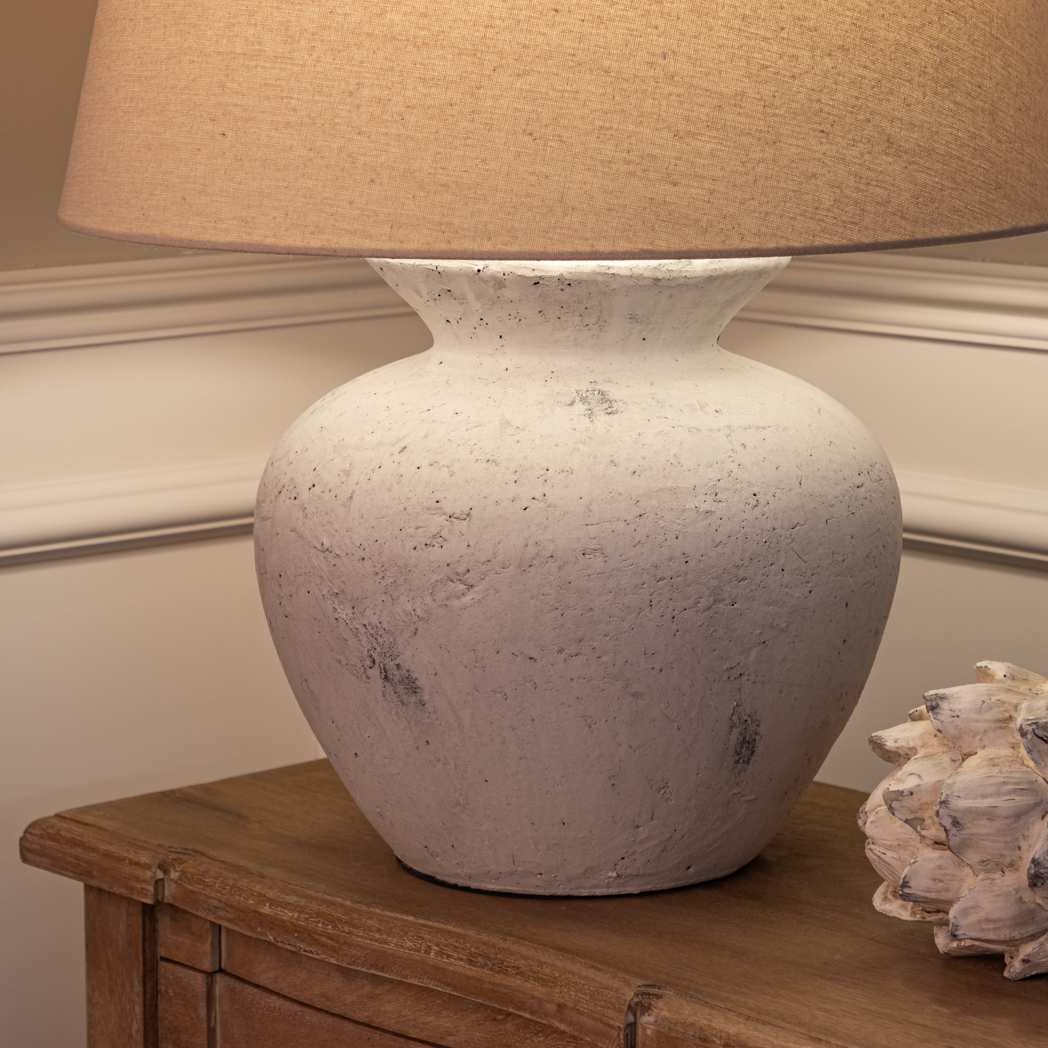 "This is our stunning Darcy Stone Based Lamp based on our fabulous Darcy Vase and offers a rustic touch to any home. This vase comes combined with a Cream Linen Fleck Shade and with it's neutral tones would suit all beautiful homes"- Jessica and Adam