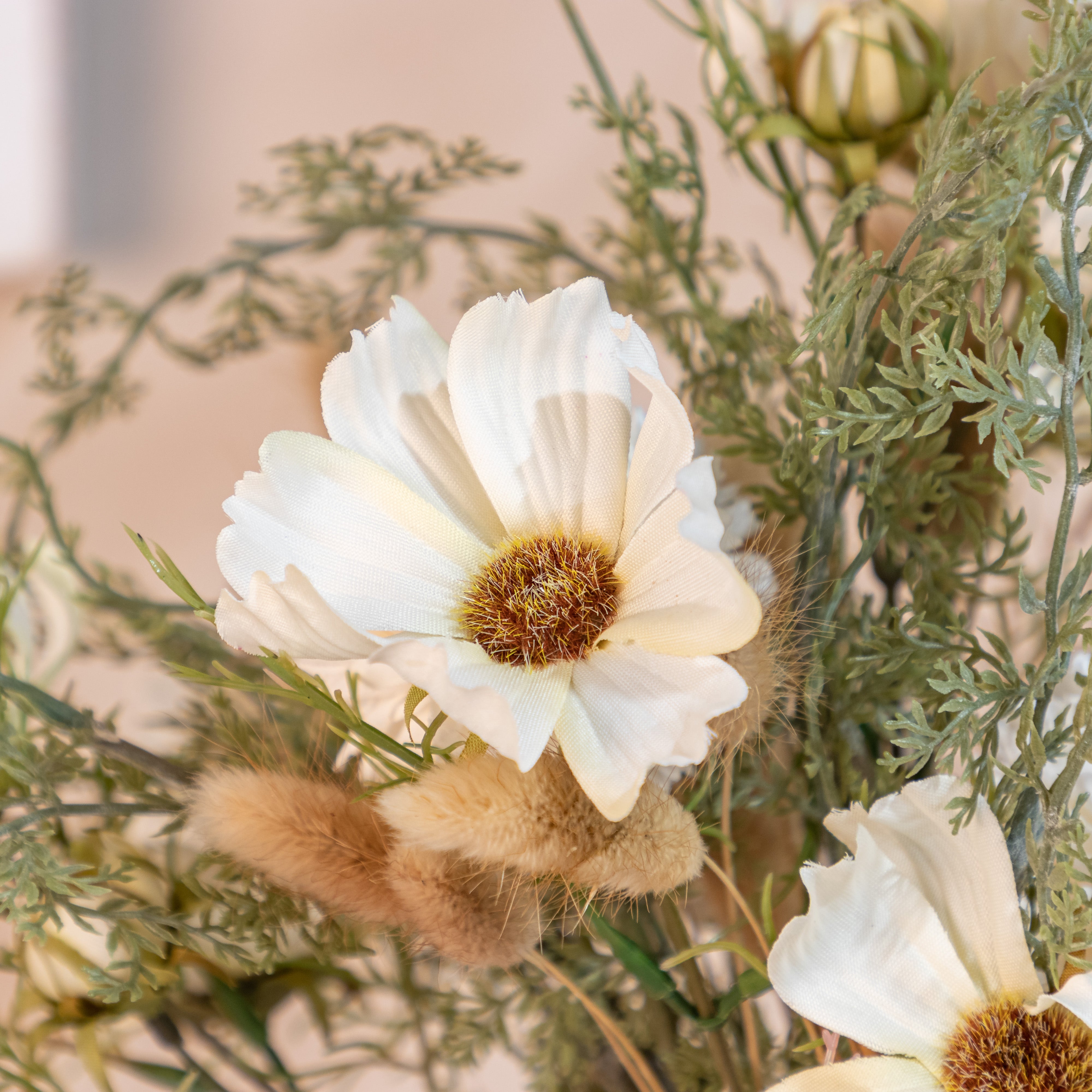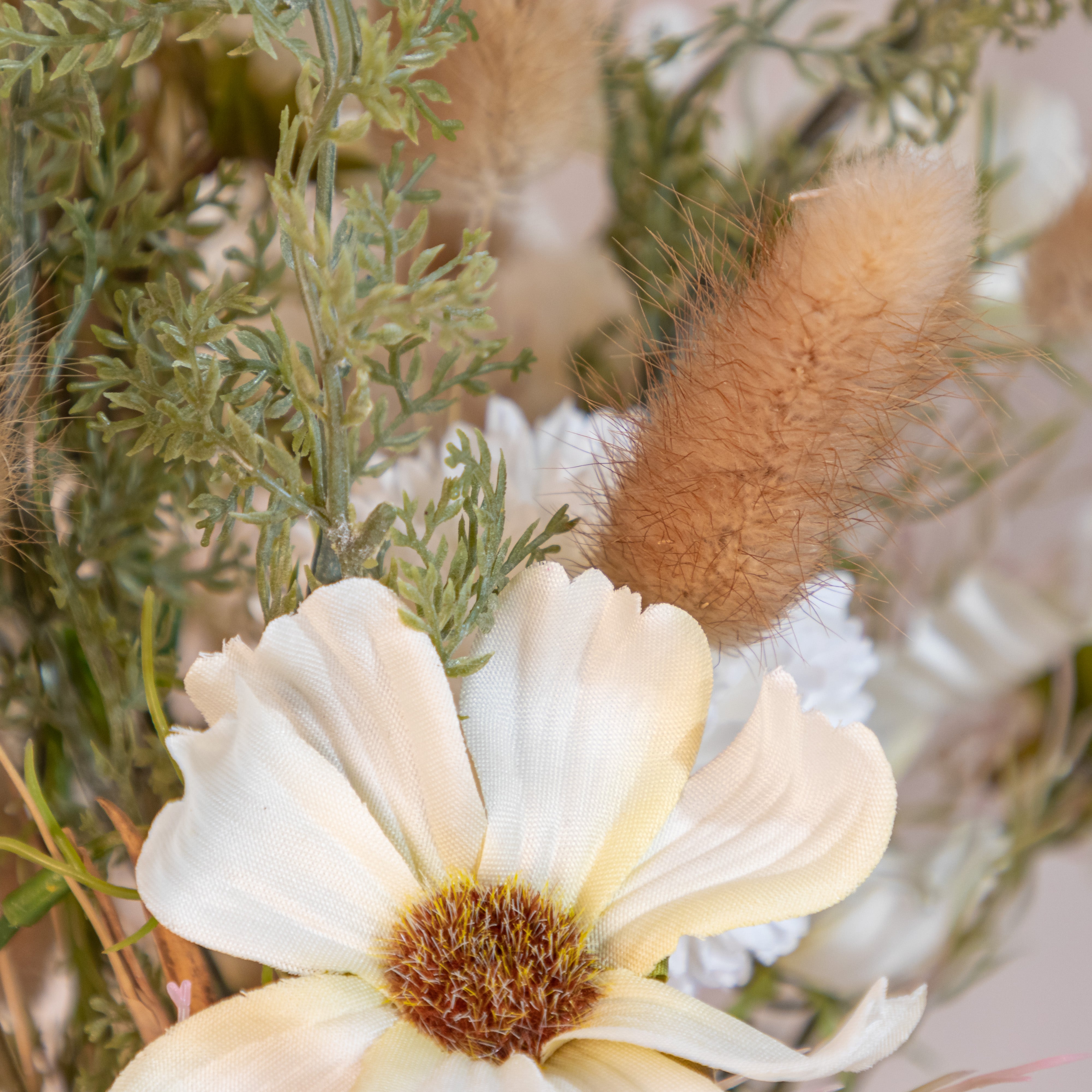 "This Farm House Bunny Tail and Country Creams arrangement offers a charming addition to any rustic home. Made with high-quality materials, this set includes soft bunny tails and a variety of cream and greens, perfect for adding a cozy touch to your farmhouse decor. Add a touch of country charm to your living space with this delightful arrangement" - Jessica and Adam