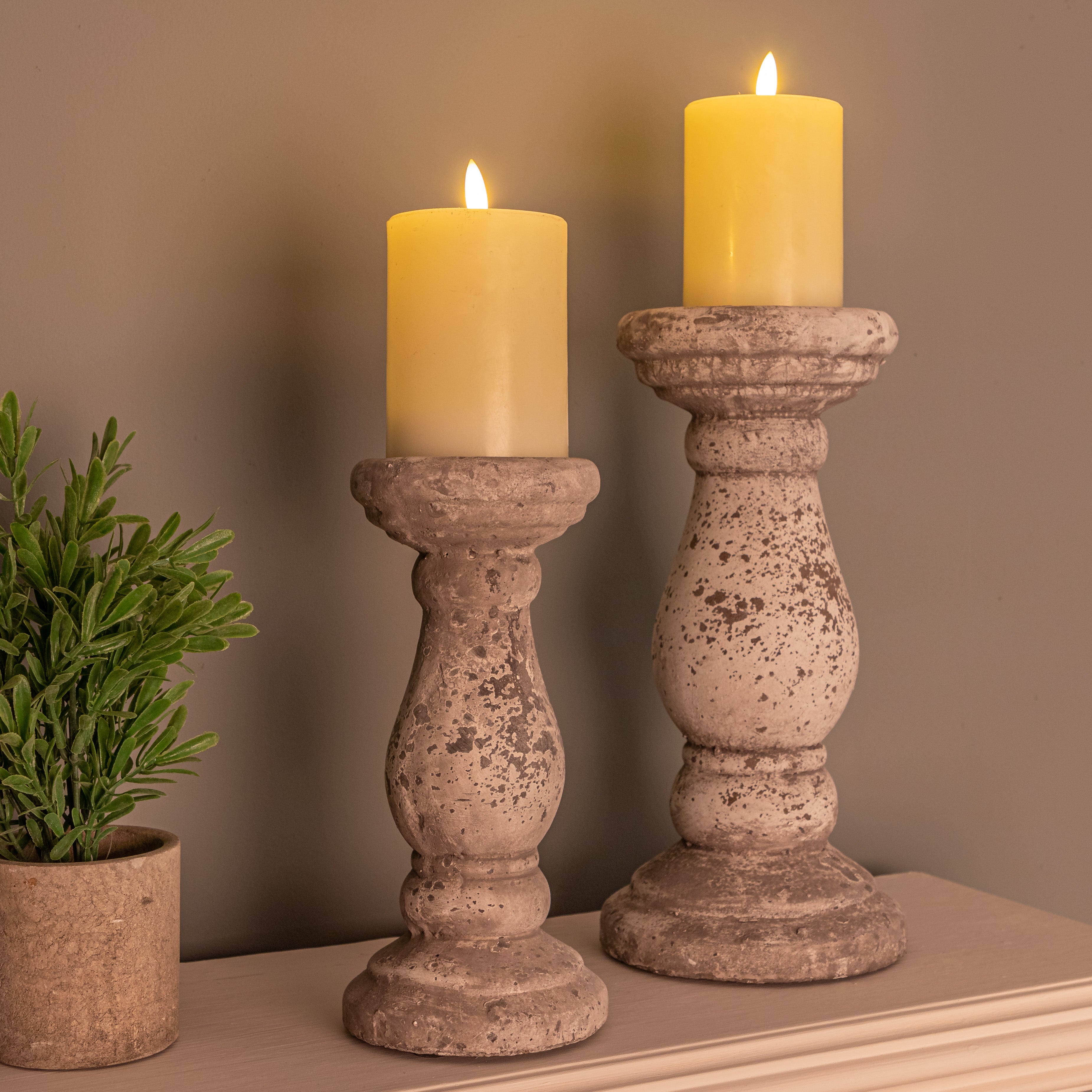 This candle holders beauty is in its simplicity. A turned style shaped and rustic stone effect finish give this candle a truly elegant look.