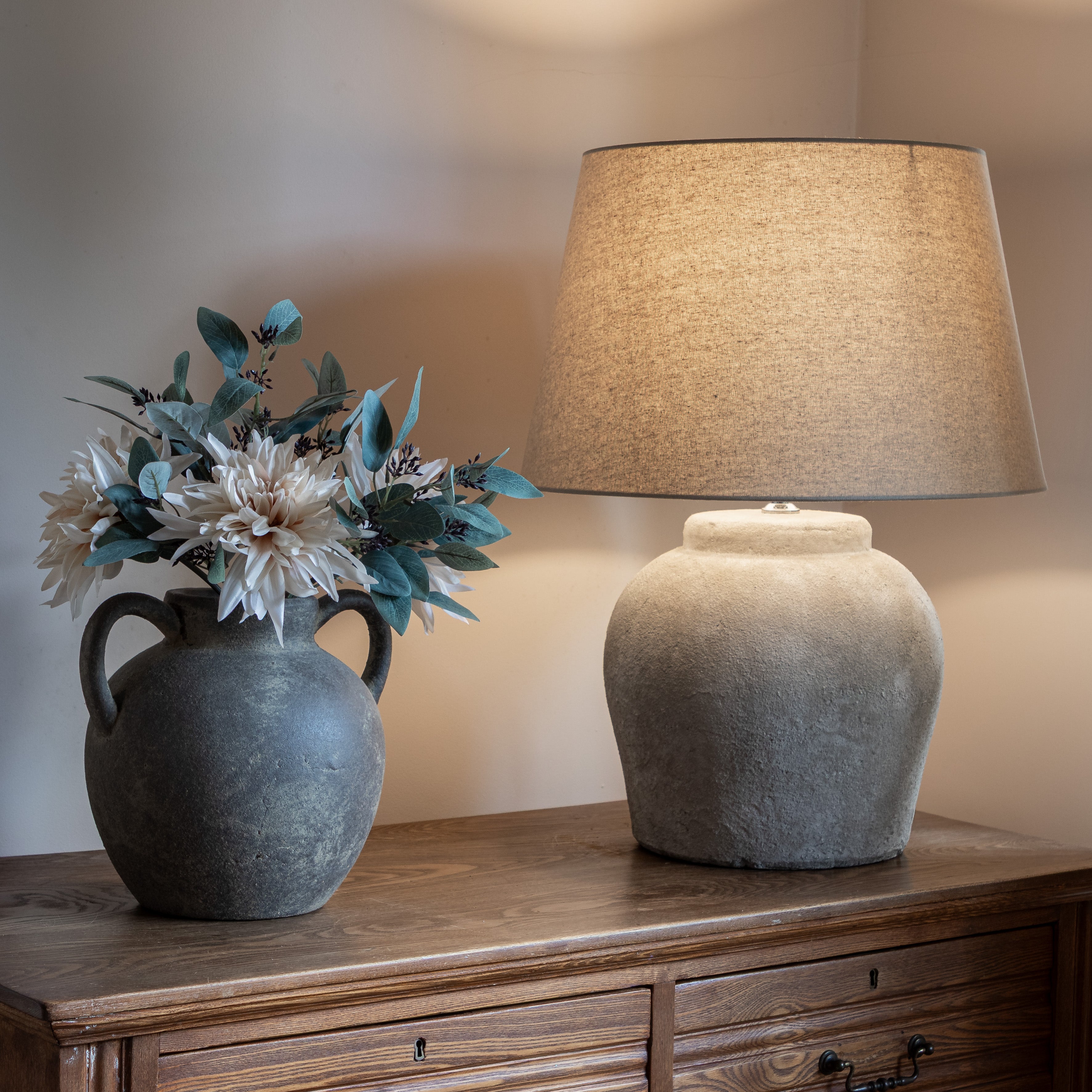 "Another fabulous addition to our textured selection is this Large Textured Rustic Stone Based Lamp adding natural charm to any room. Its sturdy construction ensures stability, while the neutral tones complement a variety of decor styles. Ideal for creating a warm, inviting atmosphere in your living space"- Jessica and Adam