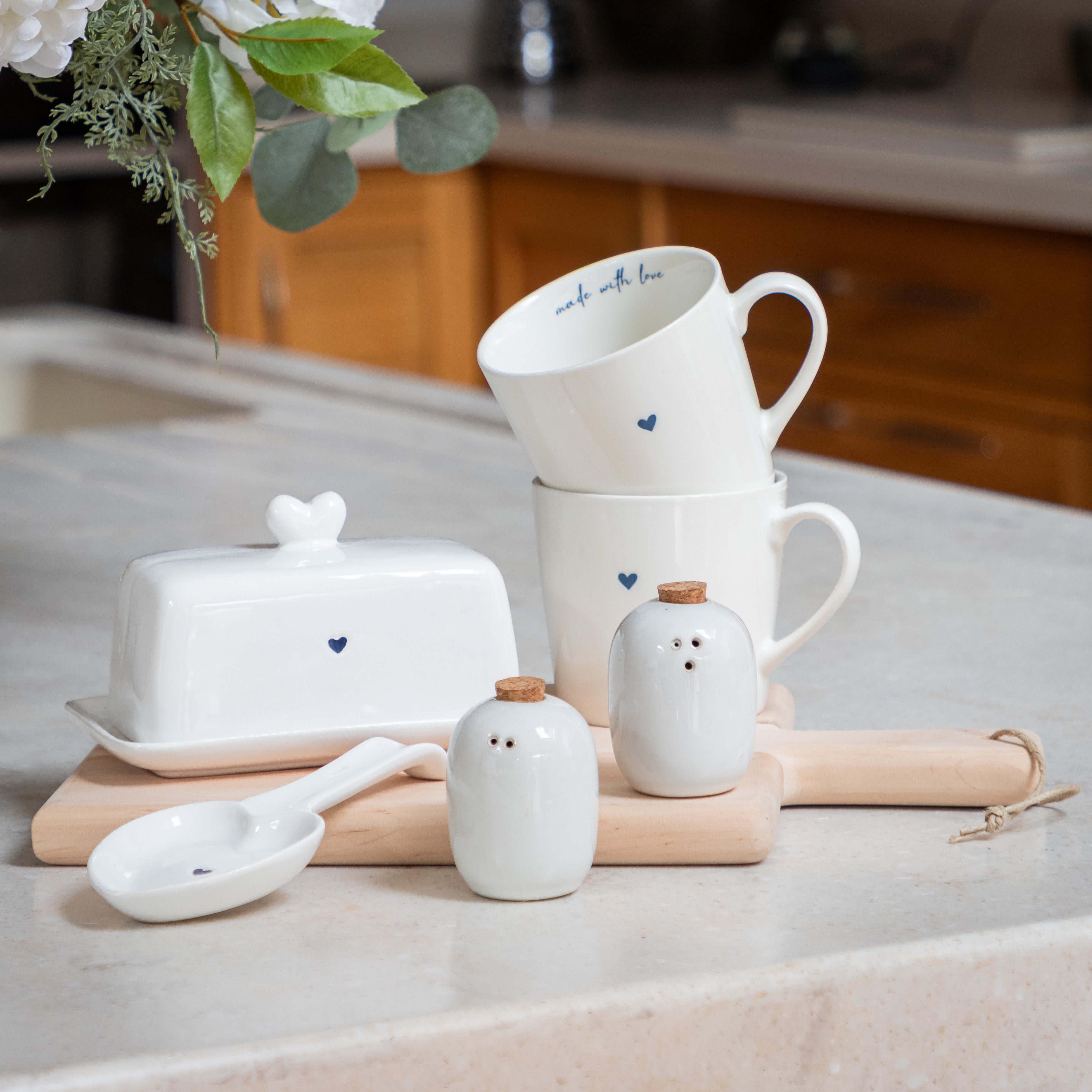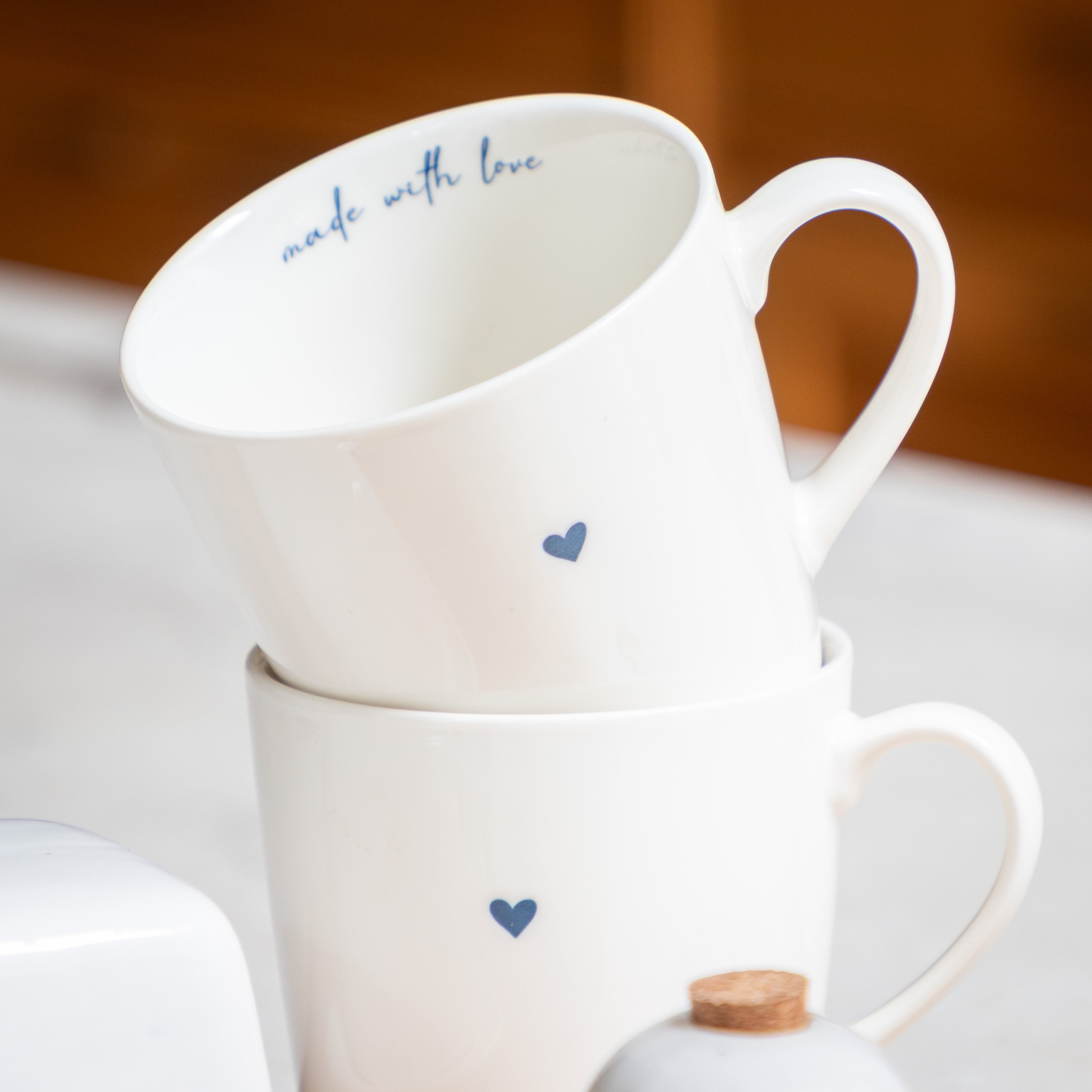 "We simply love these "made with love" tea or coffee mugs. They are a great size when you want a good sized drink and they just fit perfectly in your hand. They come as a matching pair" - Jessica and Adam