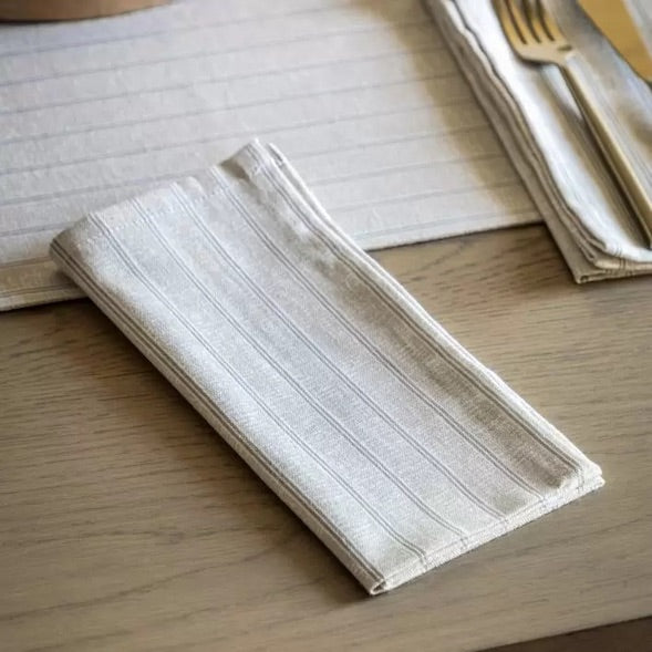 "Add a little sophistication and rustic charm to your table with this set of 4 cotton napkins. Made from 100% cotton the natural stripe napkins will elevate your dining table. Coordinating items available to complete the look" - Jessica and Adam
