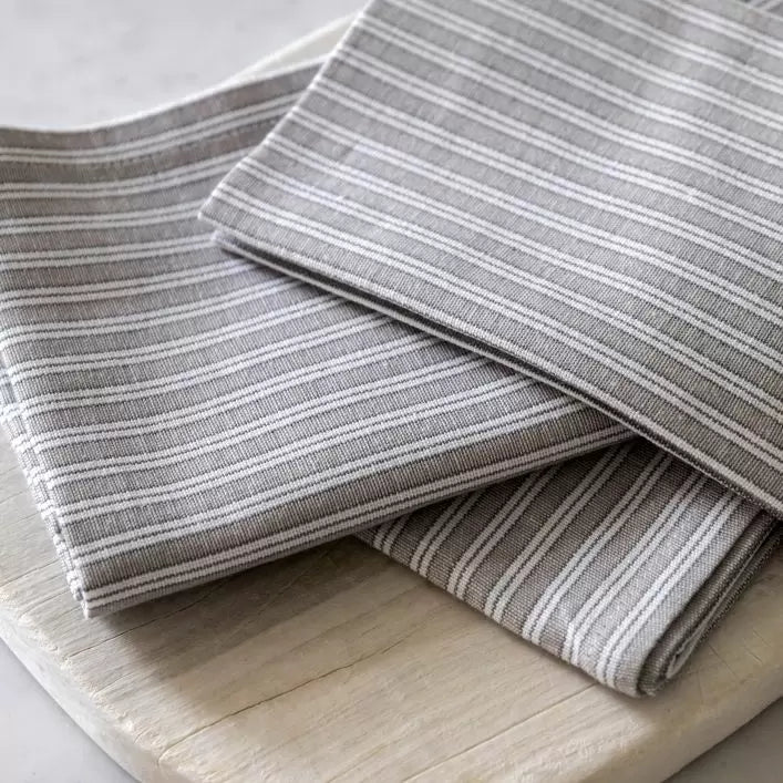 "Add a little sophistication and rustic charm to your table with this set of 4 grey stripped cotton napkins. Made from 100% cotton the natural stripe napkins will elevate your dining table. Coordinating items available to complete the look" - Jessica and Adam