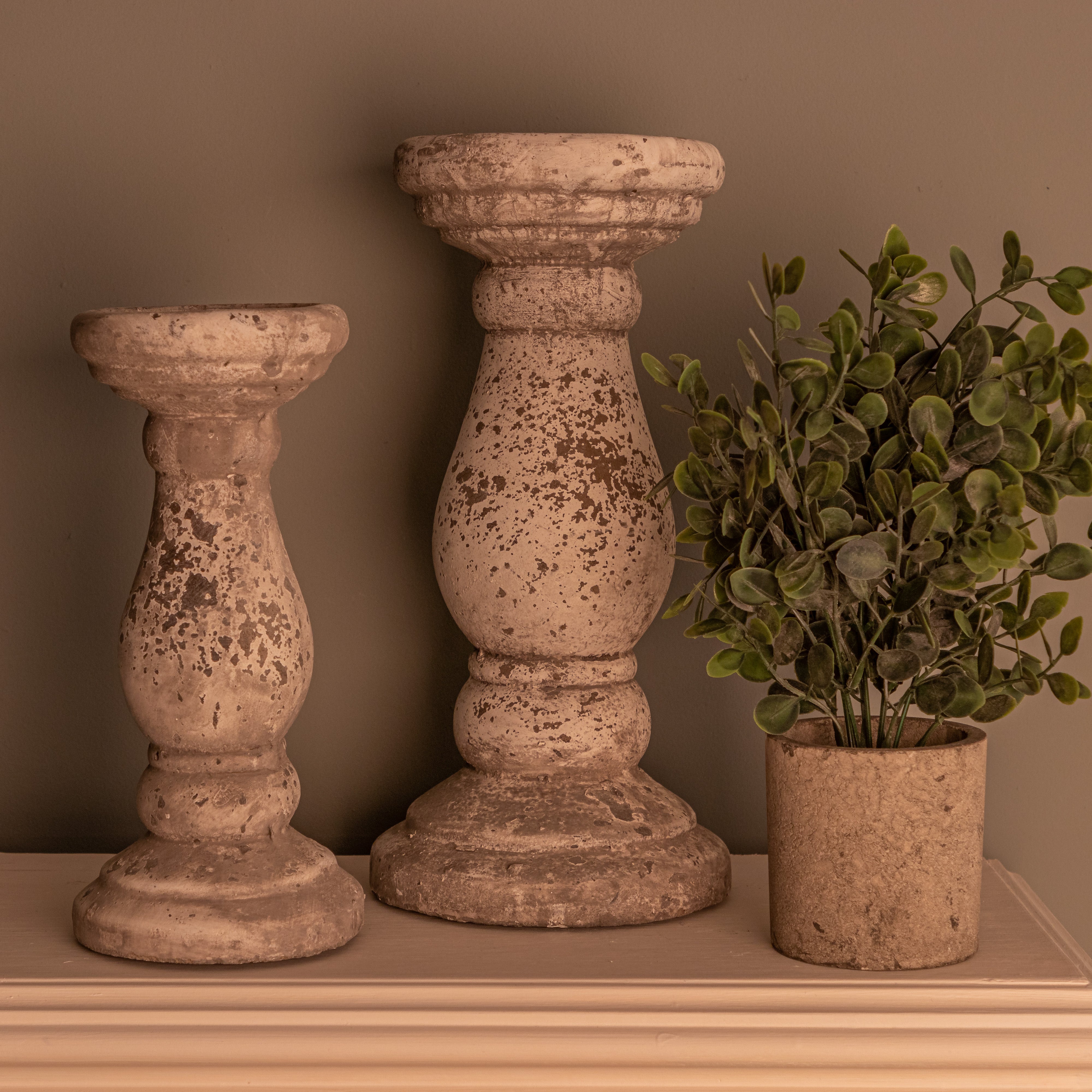 This candle holders beauty is in its simplicity. A turned style shaped and rustic stone effect finish give this candle a truly elegant look.