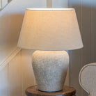 "This Rustic Textured Stone Style Table Lamp adds a touch of warmth and character to any room. Its textured, stone-style design exudes a cosy and inviting atmosphere. Handcrafted, this lamp is a perfect combination of rustic charm and modern style and comes complete with Taupe Linen Shade" - Jessica and Adam