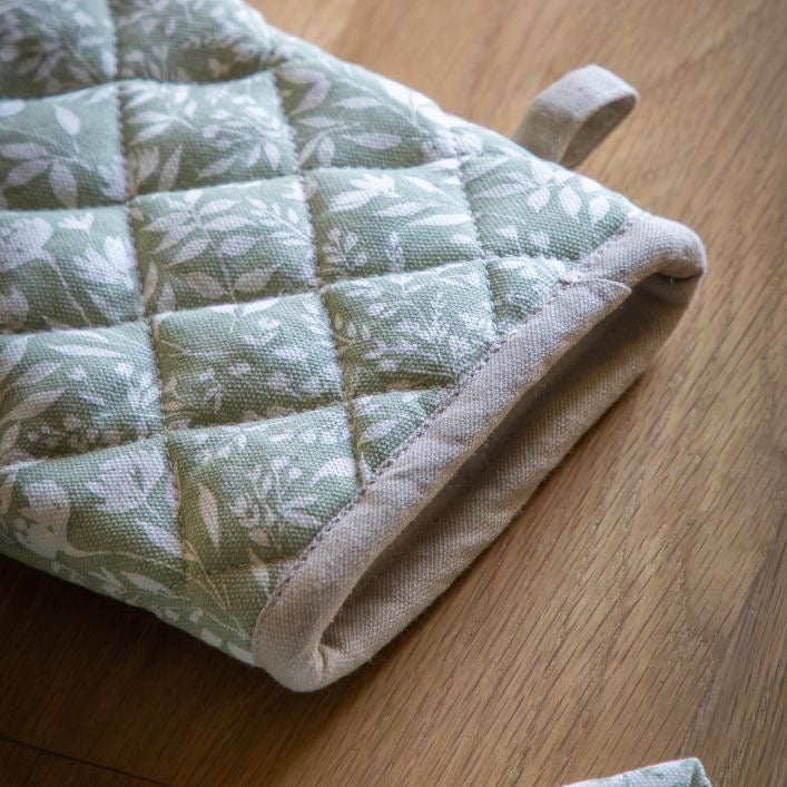 "Get the perfect combination of style and practicality with this chic single oven mitt. Made from 100% cotton with a handy easy hanging hook the oven mitt features a chic floral pattern, a perfectly stylish addition to any kitchen. Coordinating items available to complete the set" - Jessica and Adam