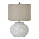 "We love this Squat White Beaded Ceramic Lamp which exudes elegance. Perfect for both a contemporary and traditional look and... See Description