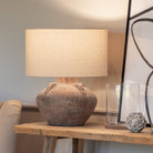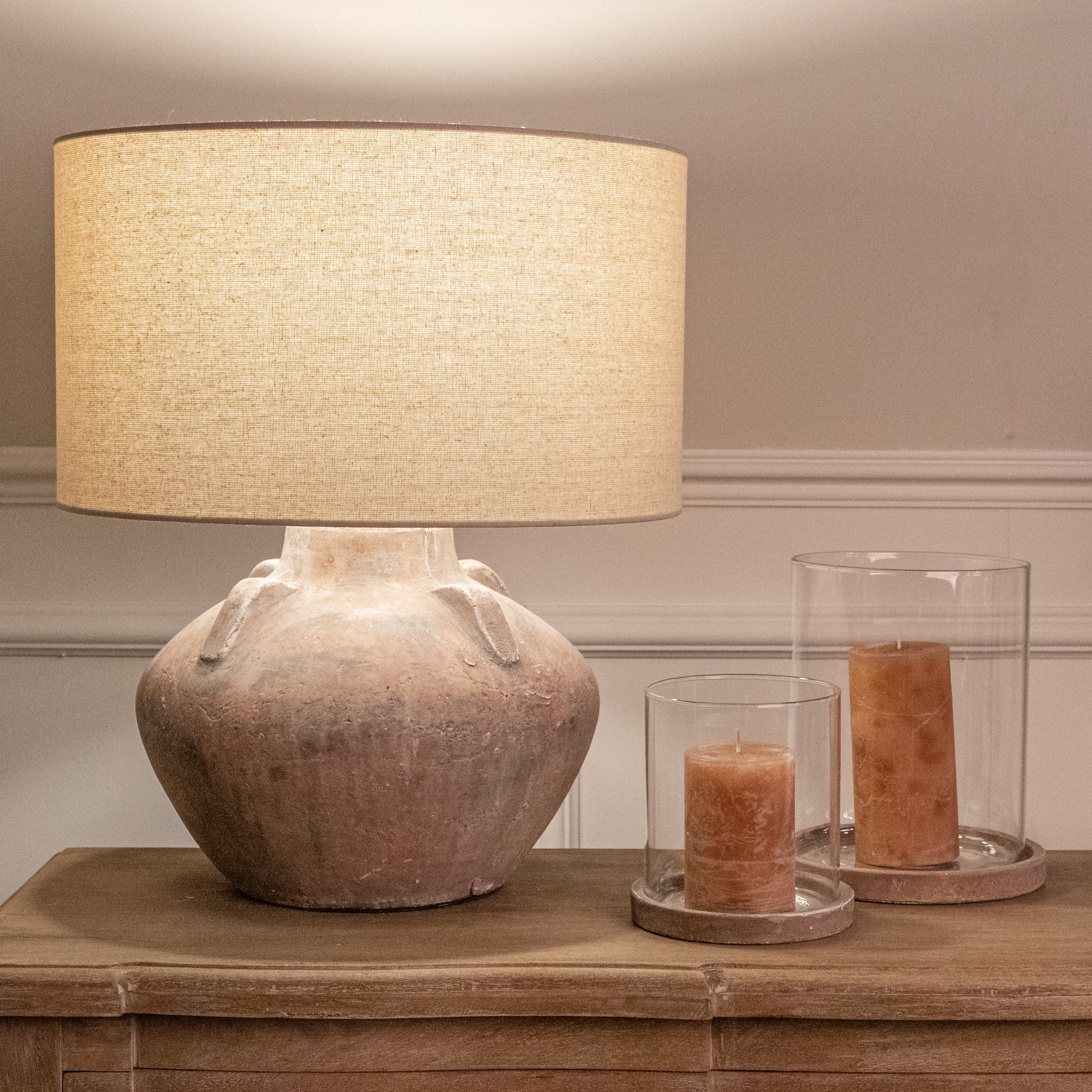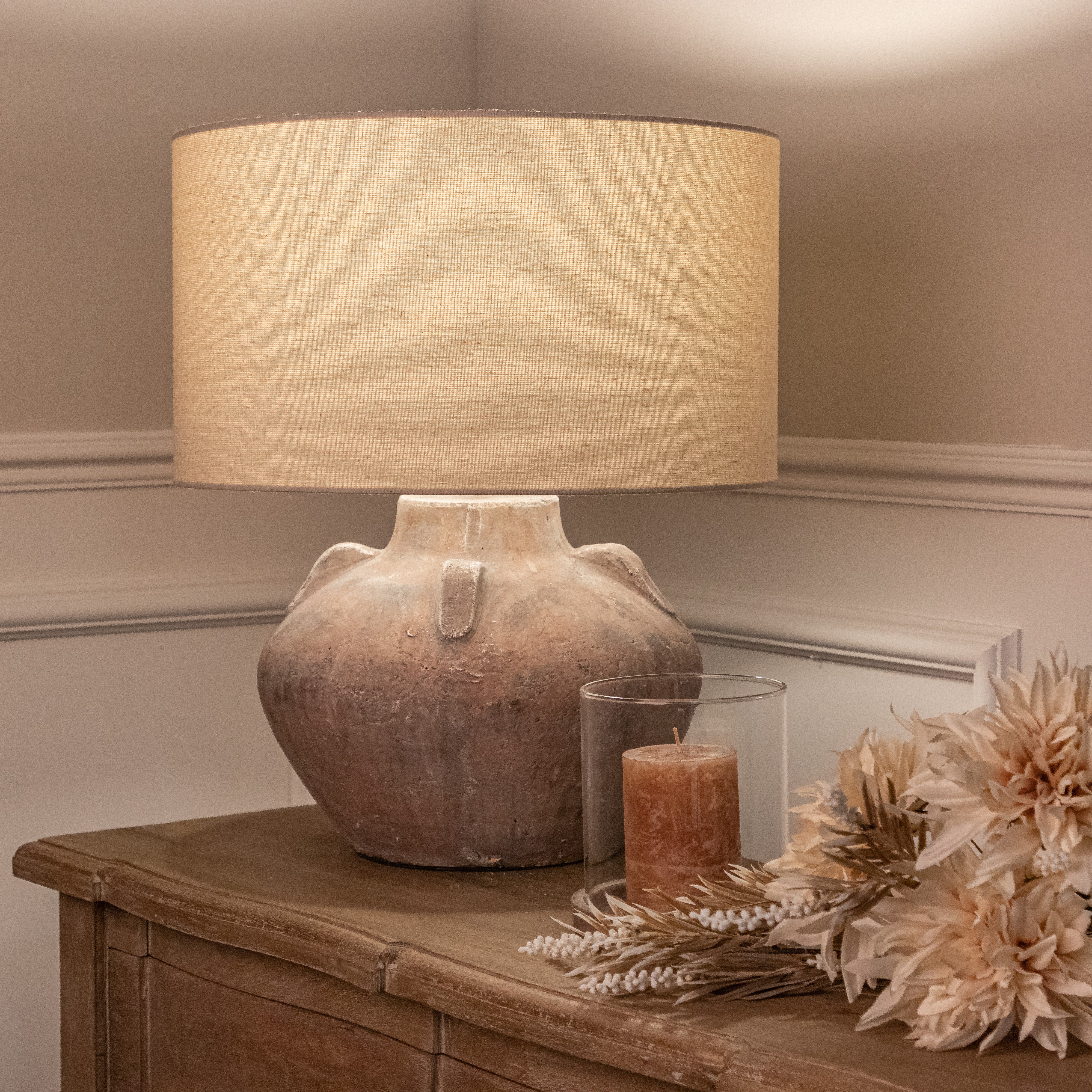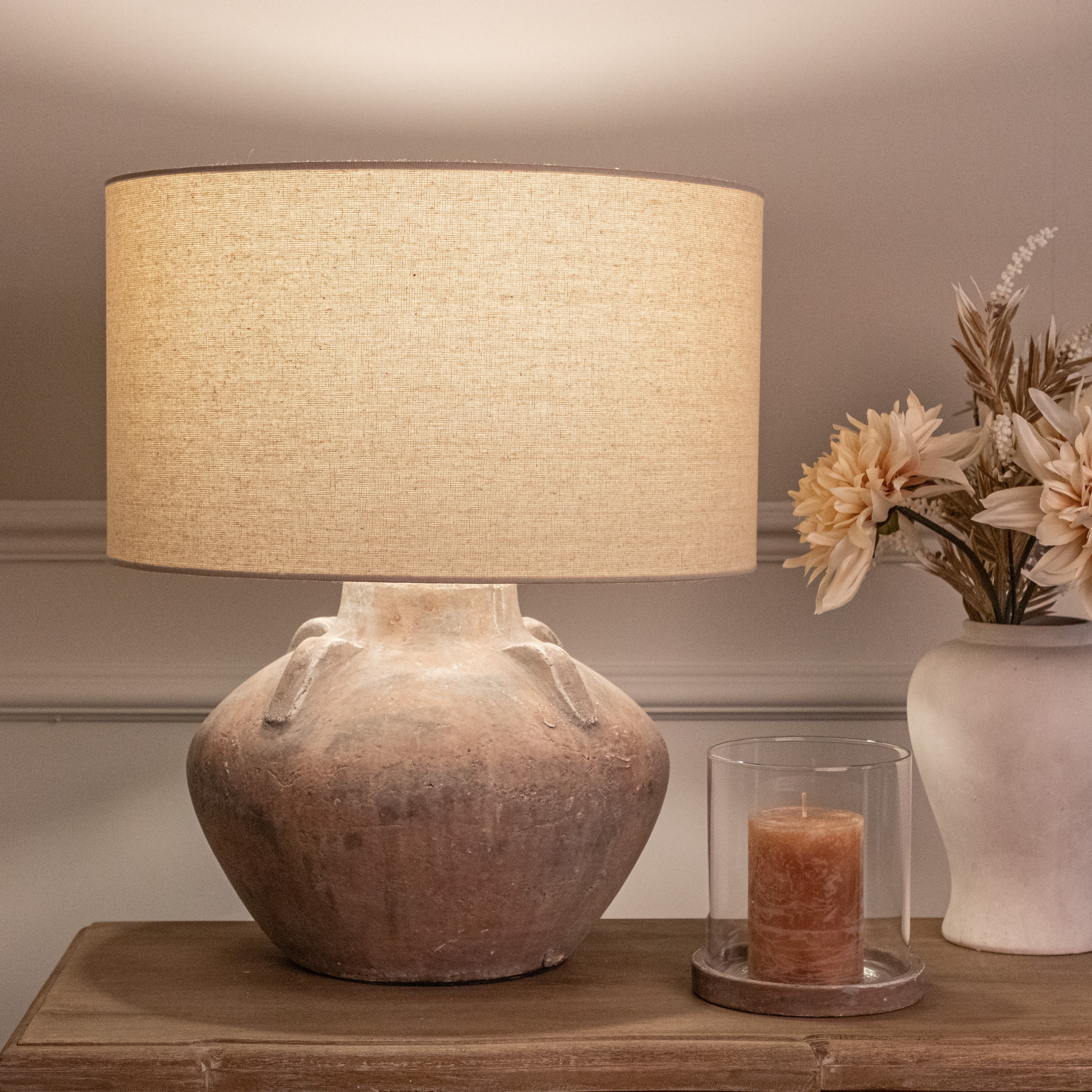 "This Roman style rustic terracotta coloured table lamp is a timeless addition to any space. With a classic design and durable construction, it offers a touch of elegance and functionality. Perfect for illuminating your living room or bedroom, this lamp will add a warm and inviting glow to your home" - Jessica and Adam
