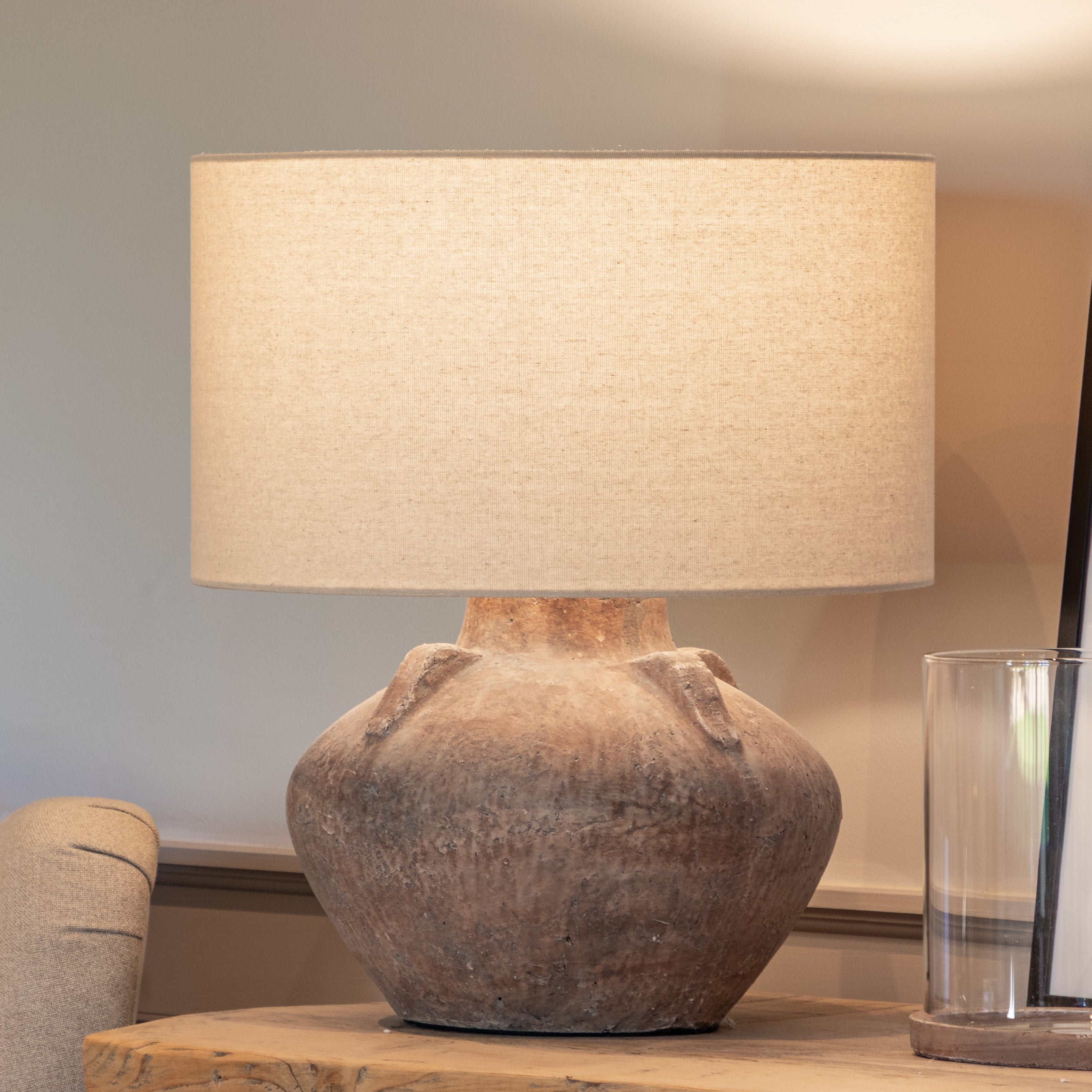 "This Roman style rustic terracotta coloured table lamp is a timeless addition to any space. With a classic design and... See Description
